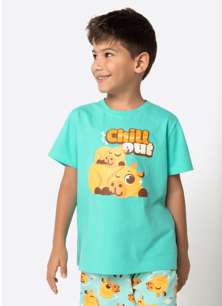 Pijama Manga Curta Algodão Menino Capivara Vibes