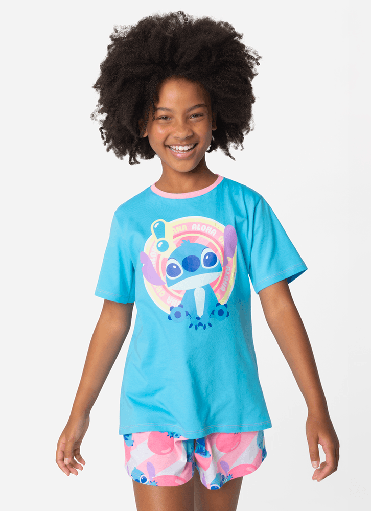Pijama Manga Curta Algodão Menina Teen Stitch