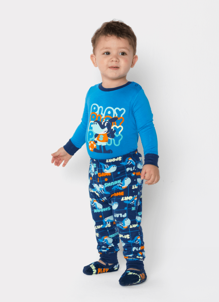 Pijama Manga Longa Viscolycra Bebê Menino Tubarão Futevôlei