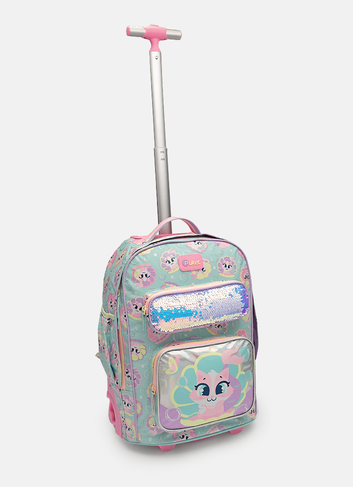 Mochila com Rodinha Grande Paetê Gata Sereia