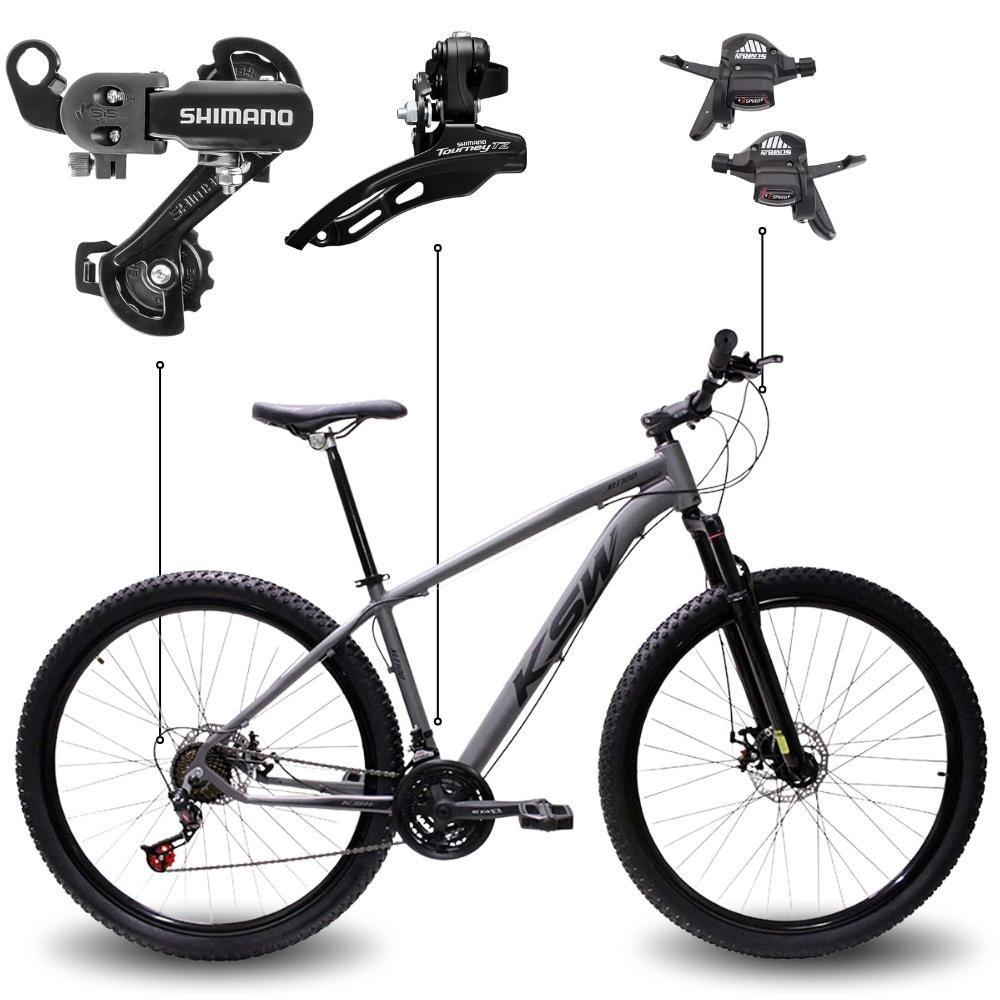 Bicicleta Aro 29 Ksw Bike Alumínio Câmbios Shimano 21 Marchas Grafite Fosco -ad Pto 15