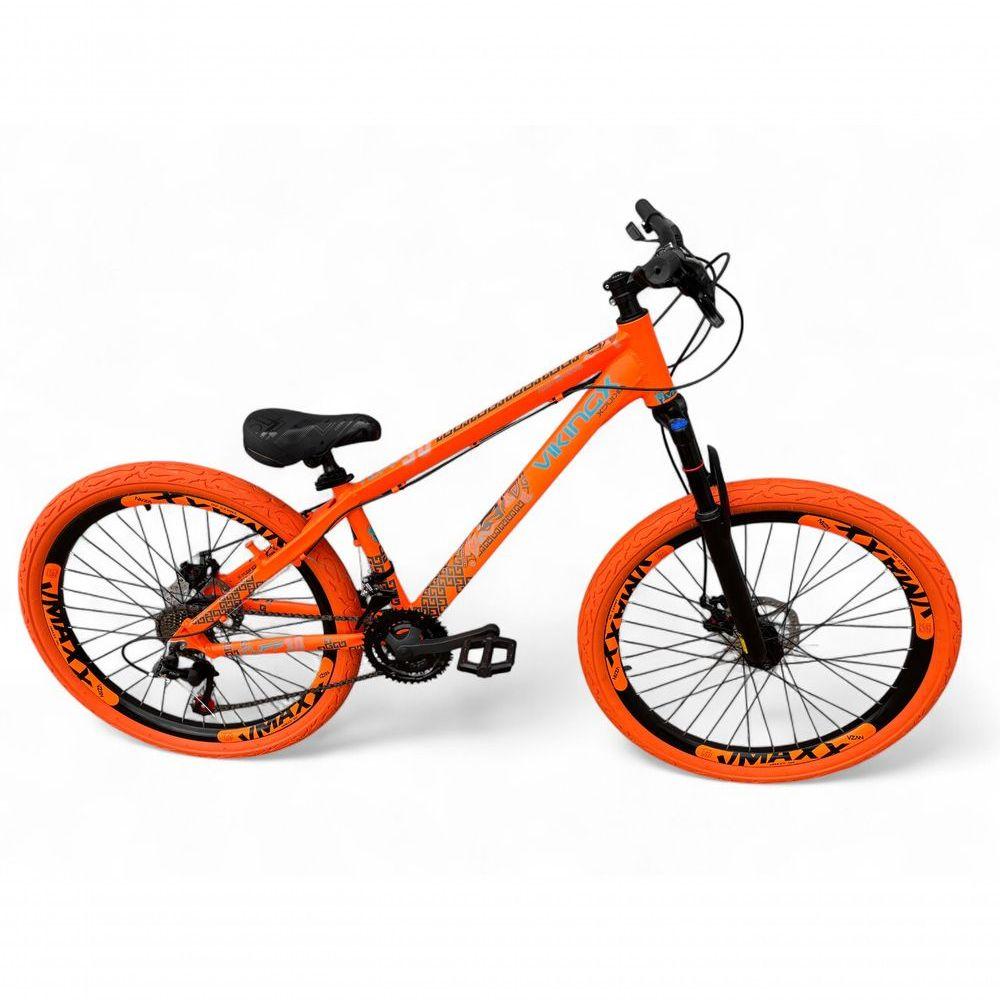 Bicicleta Aro 26 Vikingx Tuff X30 Freeride 21v Aros Vmaxx Dh Freio A Disco Pneu Flame - Laranja