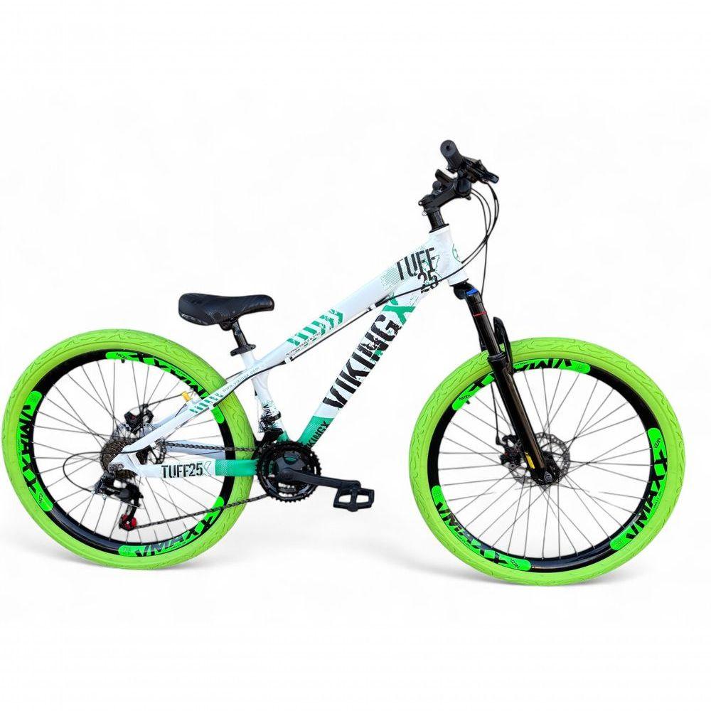 Bicicleta Aro 26 Vikingx Tuff X25 Freeride 21v Aros Vmaxx Dh Freio A Disco Pneu Flame - Verde