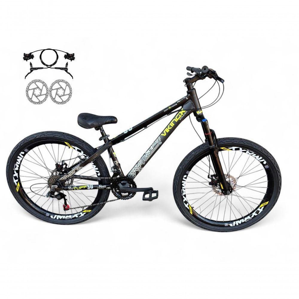 Bicicleta Aro 26 Vikingx Tuff X30 Freeride Freio Hidráulico 21v Aros Vmaxx Dh Pneu Flame - Preto
