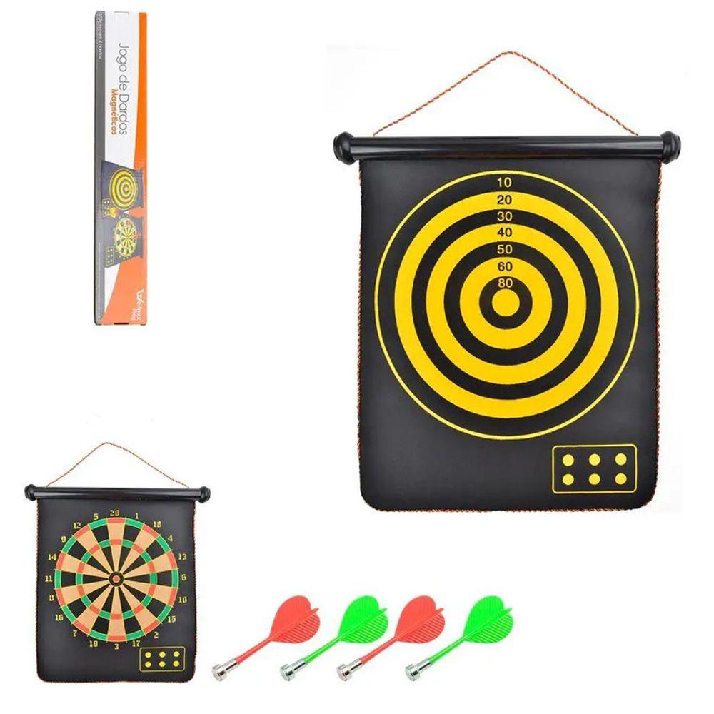 Jogo De Dardos Magnetico Grande Tabuleiro Alvo Dupla Face 38cm Com 6 Peças Kit Completo Ima Seguro