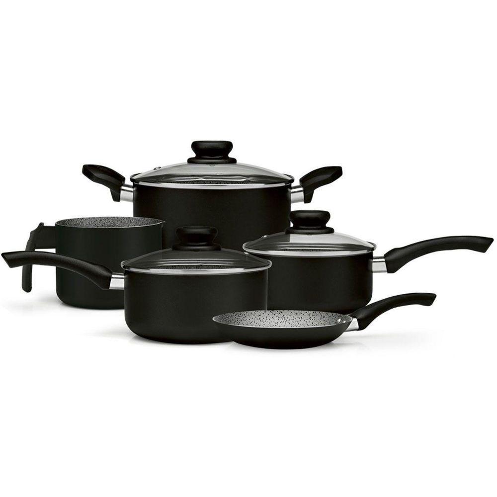 Jogo De Panelas Alumínio 5 Peças Antiaderente Preta Panelux