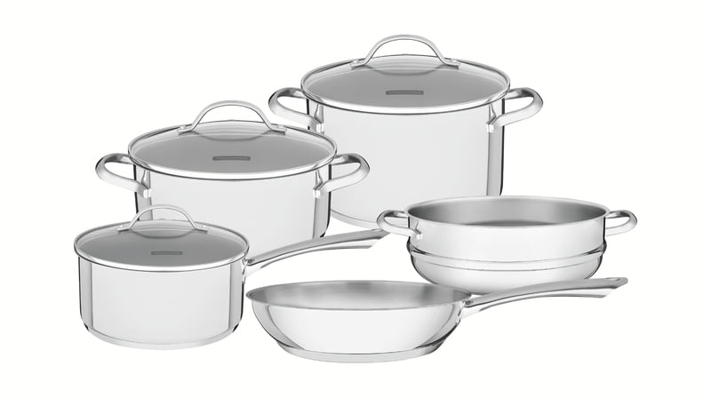 Jogo de Panelas Tramontina Una Inox Tampas de Vidro 5 Peças