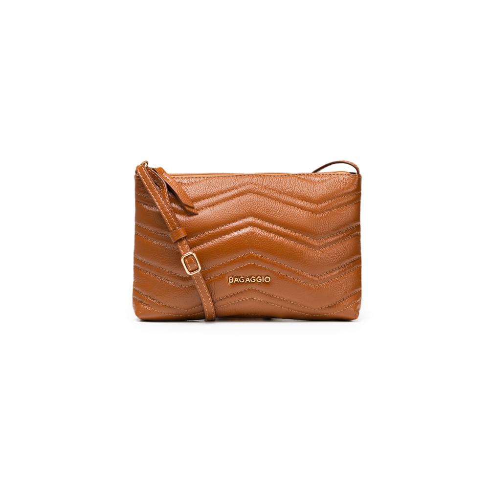 Bolsa Transversal Feminina de Couro Zig Zag Matelasse Pequena Caramelo
