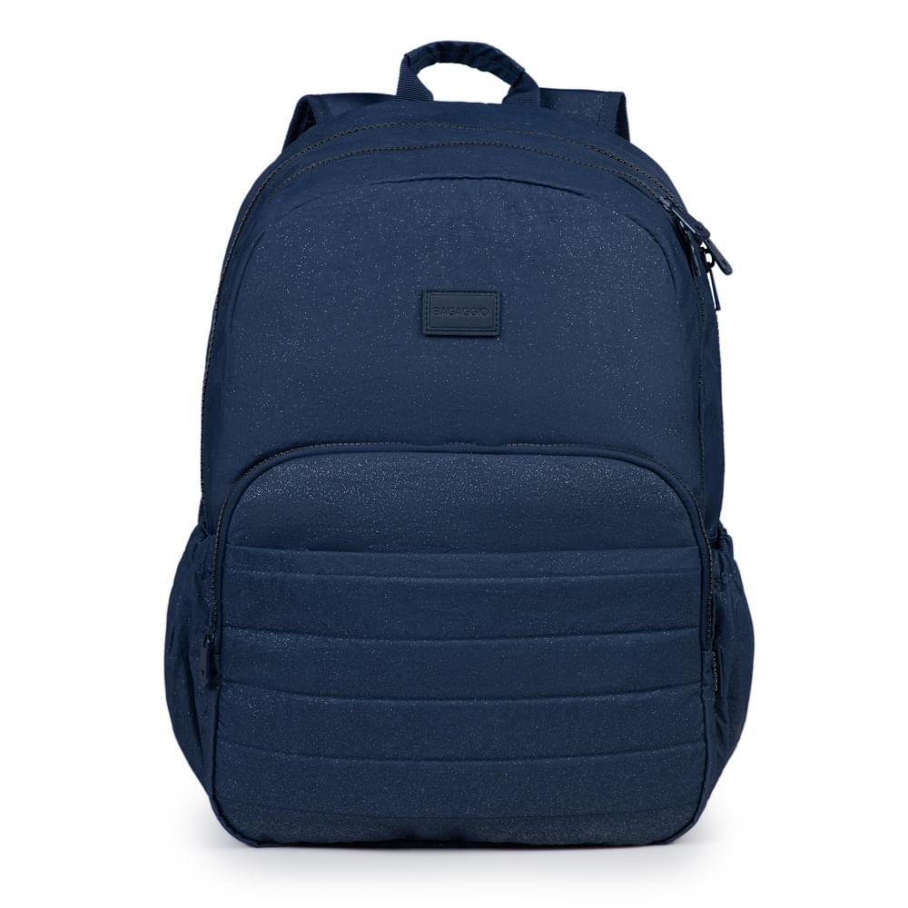 Mochila Escolar Juvenil Feminina Crinkle Glitter Azul Escura