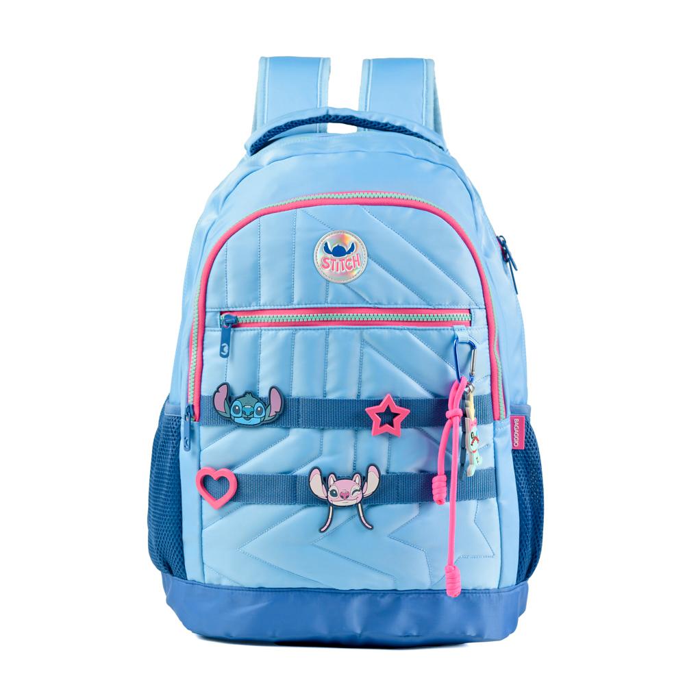 Kit Mochila Escolar Feminina Stitch e Estojo Box Stitch Azul