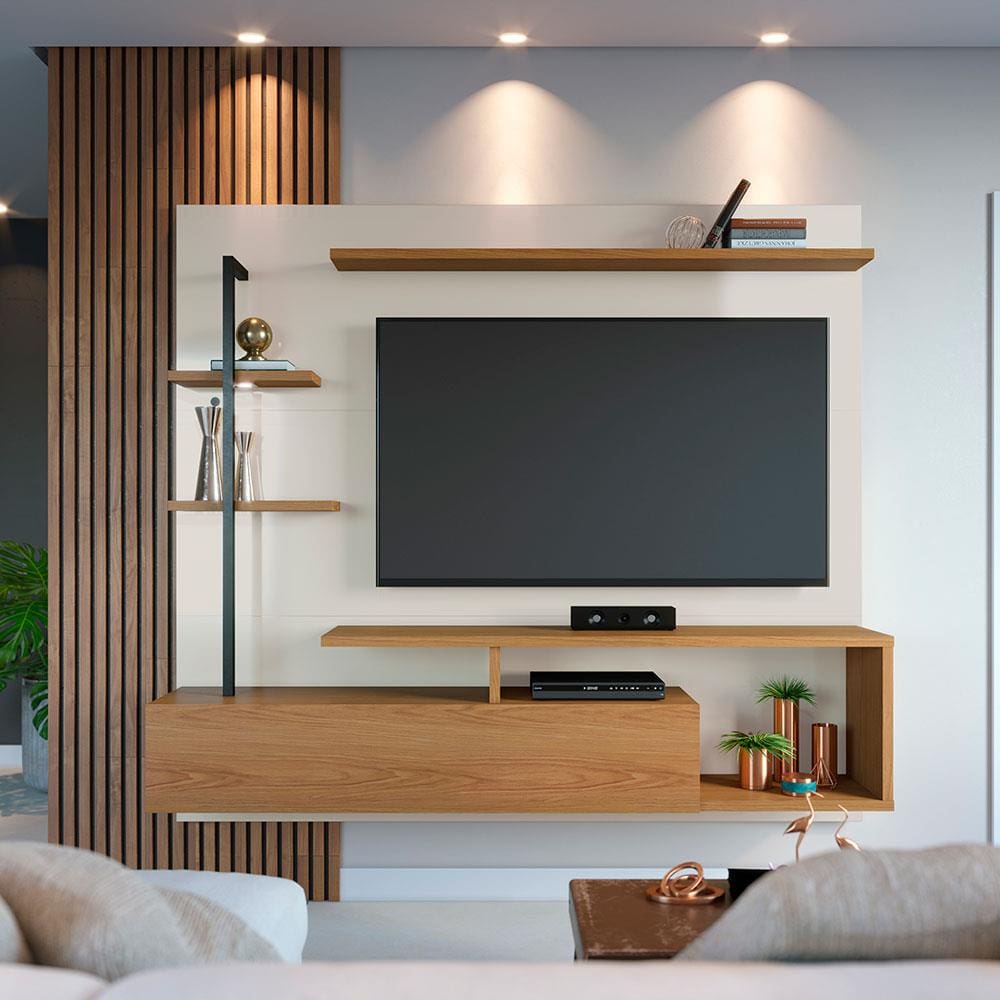 Painel de TV Colibri Juriti 180 Ripado Amêndoa Off White