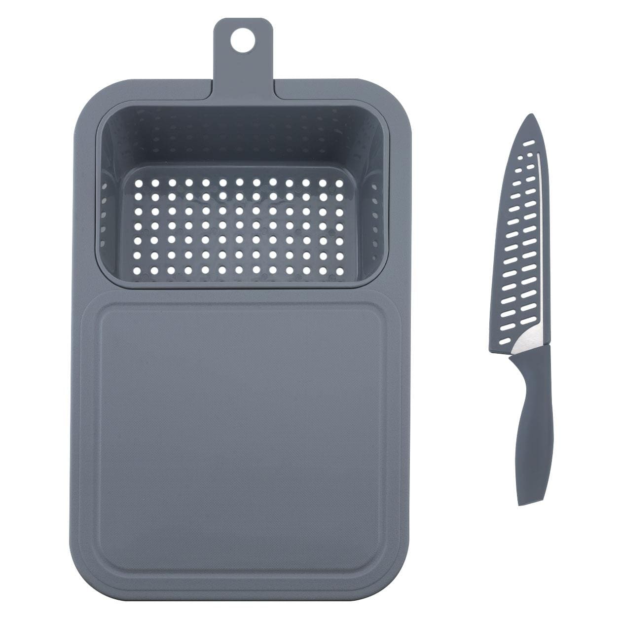 Tábua de Corte Dynasty Easy com Faca 42,7x27,7cm Cinza