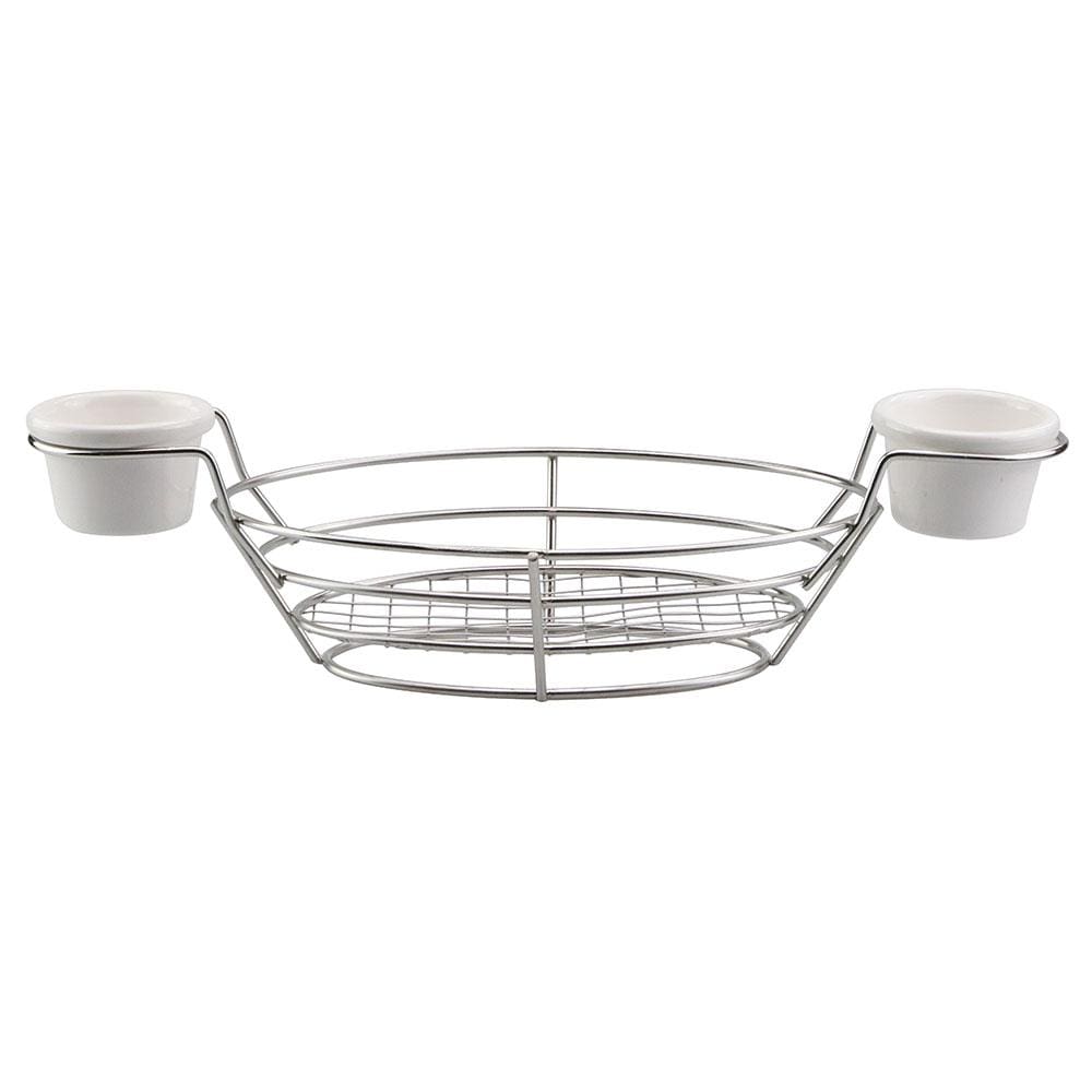 Cesta Oval Dynasty Fry em Aço Inox com 2 Molheiras - Prata