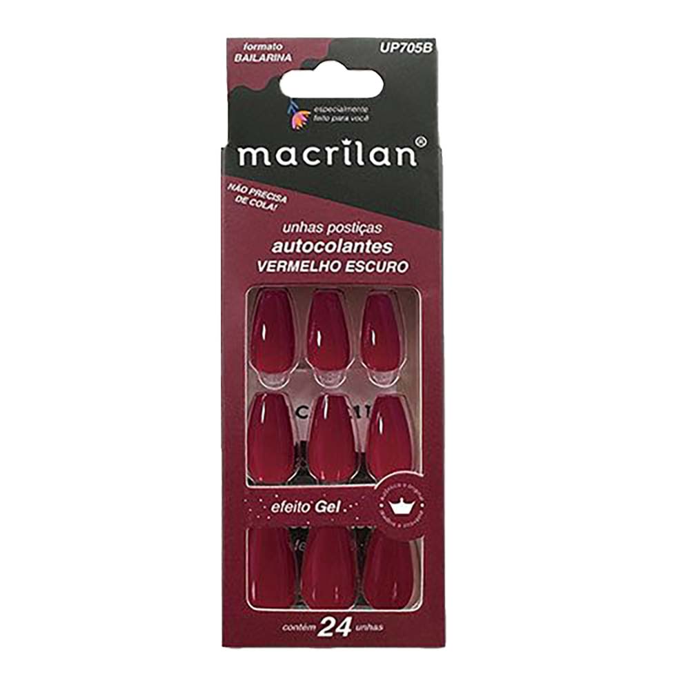 Unhas Postiças Macrilan Autocolantes Tamanho Médio Formato Bailarina