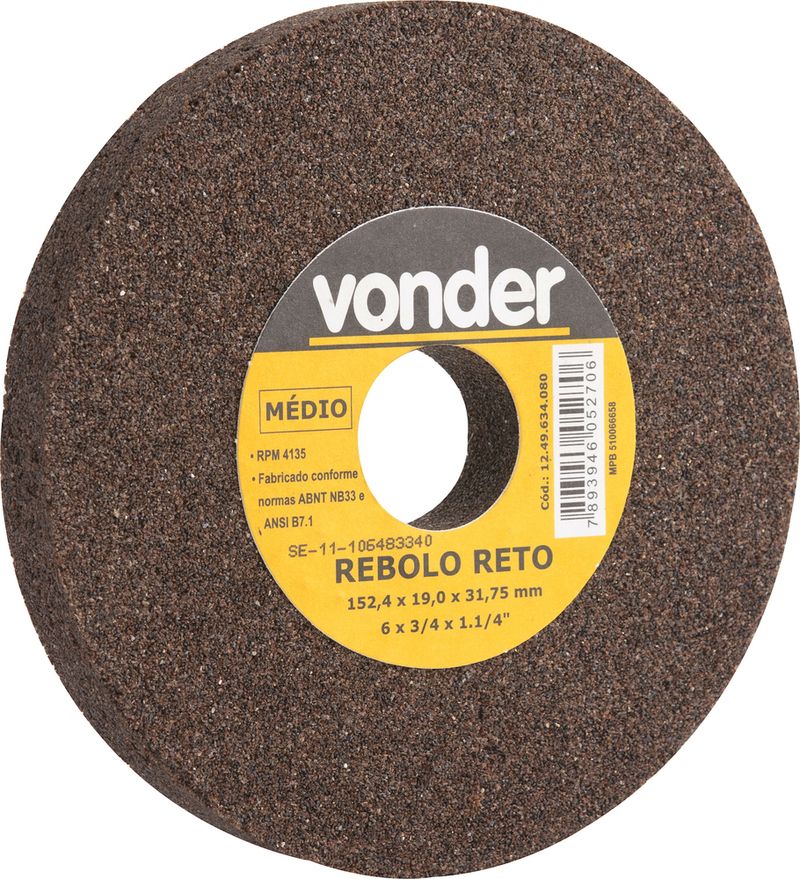 Rebolo Reto 152,4x19,0x31,8 G60 Óxido De Alumínio Uso Geral
