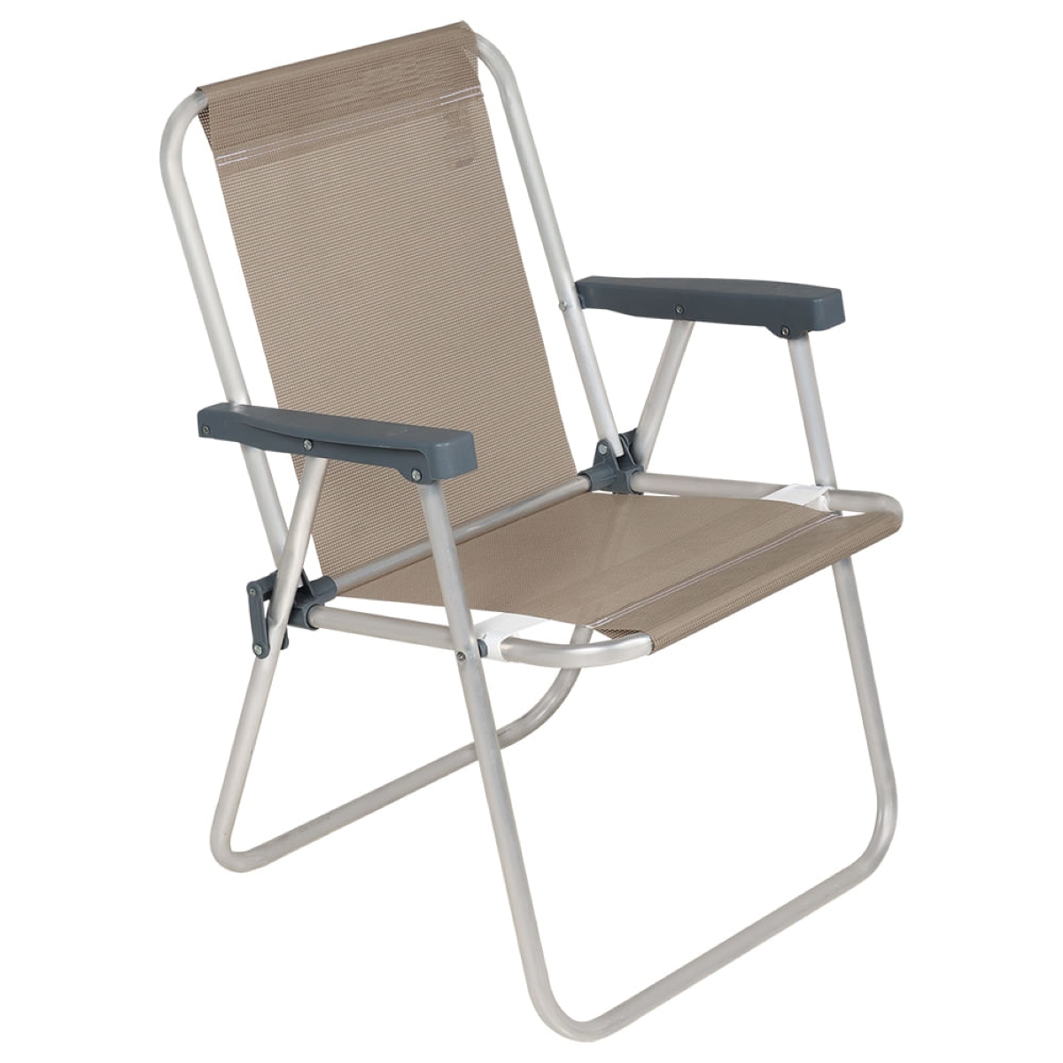 Cadeira de Praia Alta Lazy em Alumínio Bege Bel Dobrável Suporta até 110kg