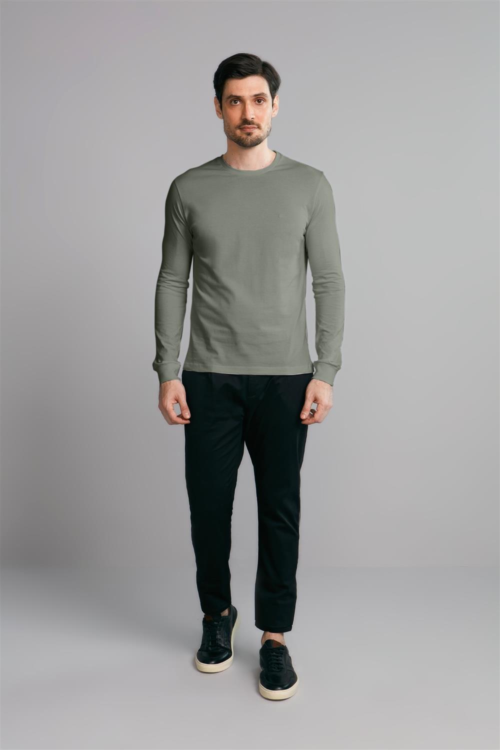 Camiseta Manga Longa Malha Slim Fit - Verde Malva