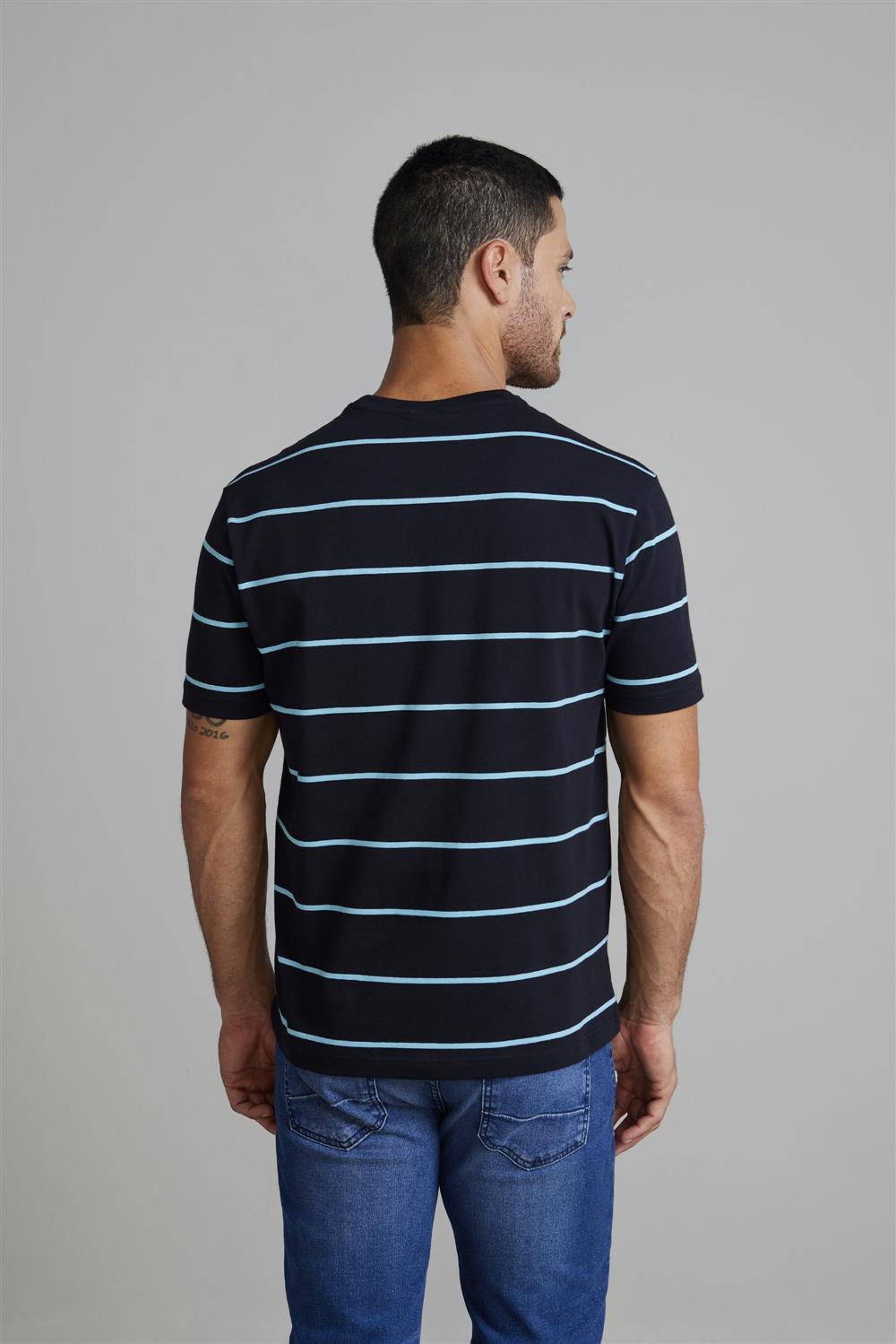 Camiseta Malha Slim Fit - Verde / Azul Marinho