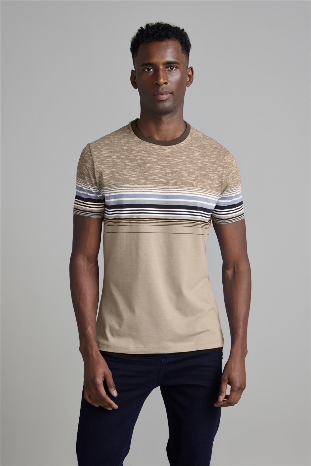 Camiseta Malha Slim Fit - Marrom Castanho / Bege Creme