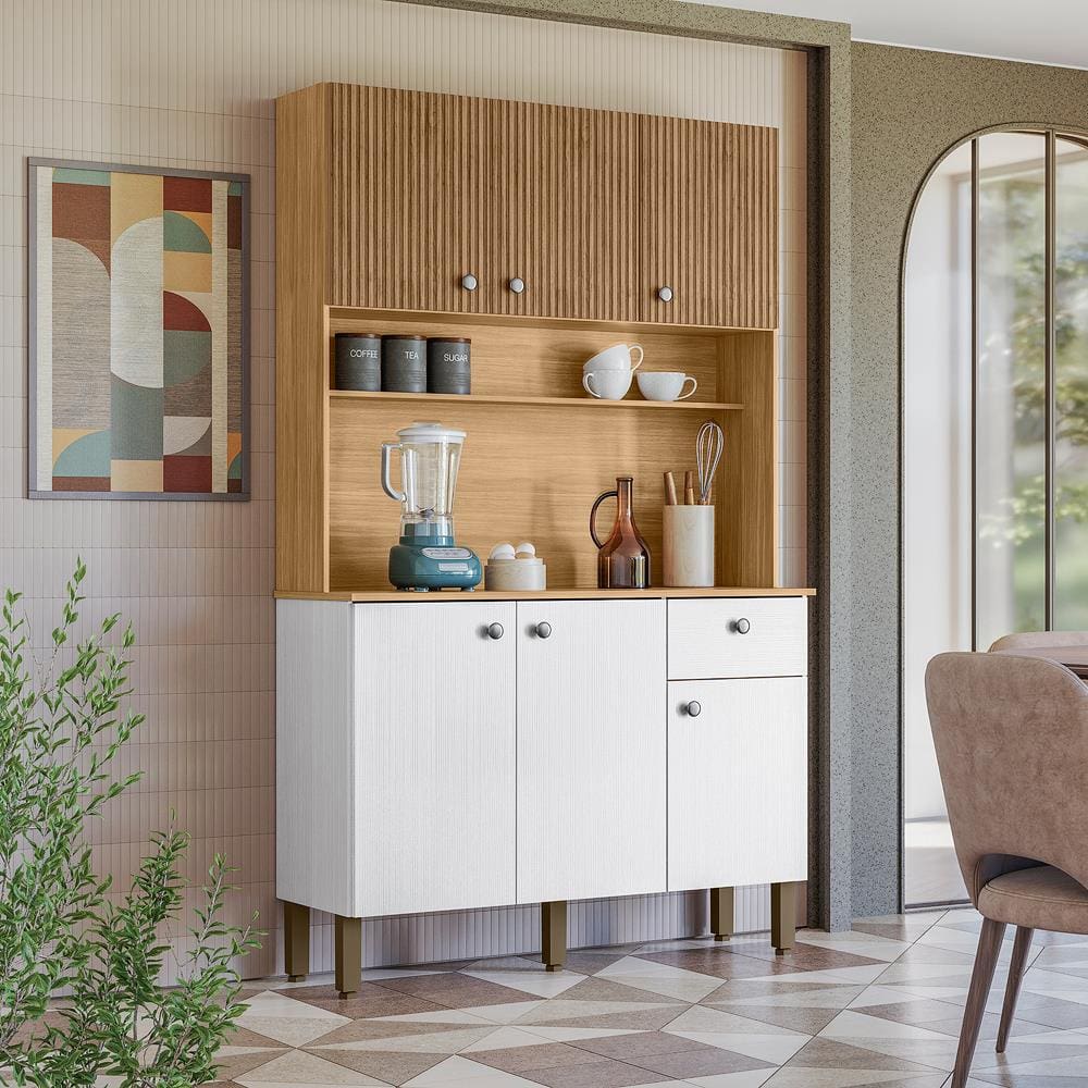 Cozinha Completa Kits Paraná GLAM 2 Peças com Painel Ripado Freijó e Vanilla