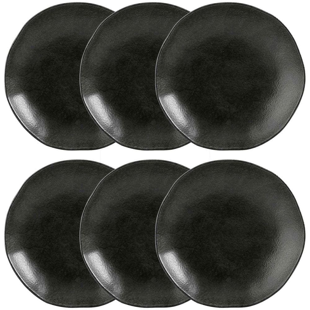 Conjunto com 6 Pratos Fundos Porto Brasil Orgânico Carbon em Cerâmica Stoneware 21,2cm - Preto