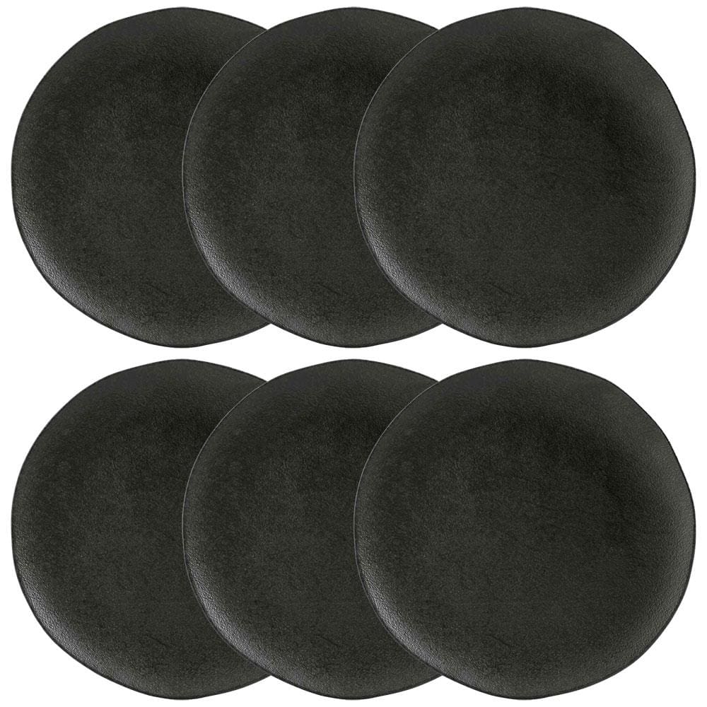 Conjunto com 6 Pratos Rasos Porto Brasil Orgânico Carbon em Stoneware 26,5cm – Preto