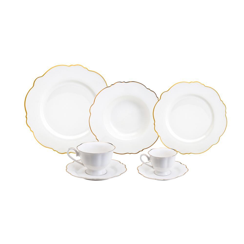 Ap de Jantar 42 pçs Porcelana Maldivas Branco c/ Fio de Ouro