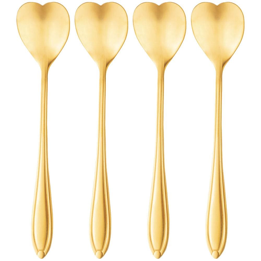 Conjunto de Colheres para Chá Wolff Heart em Aço Inox Dourado - 4 Peças