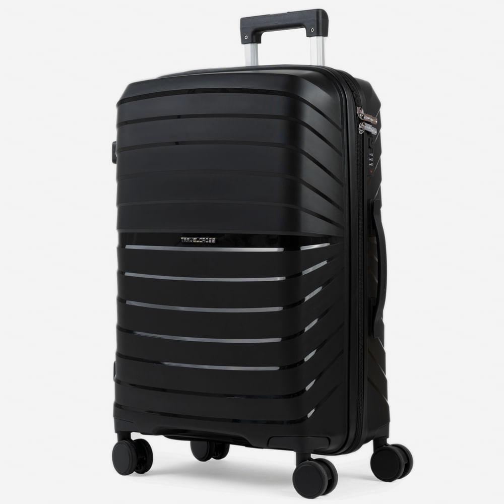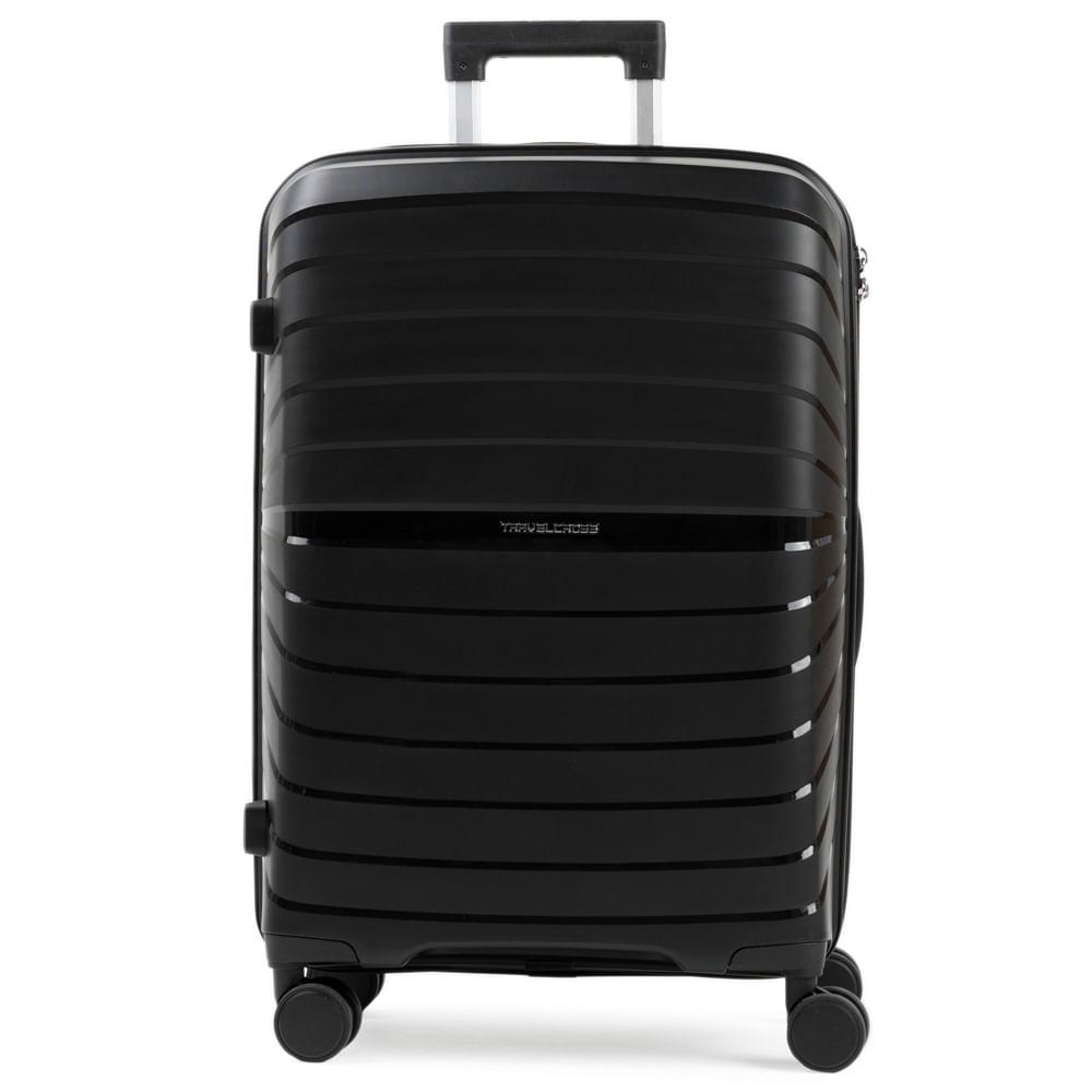 Mala Média 23 Kg Polipropileno 4 Rodas Rover Preta
