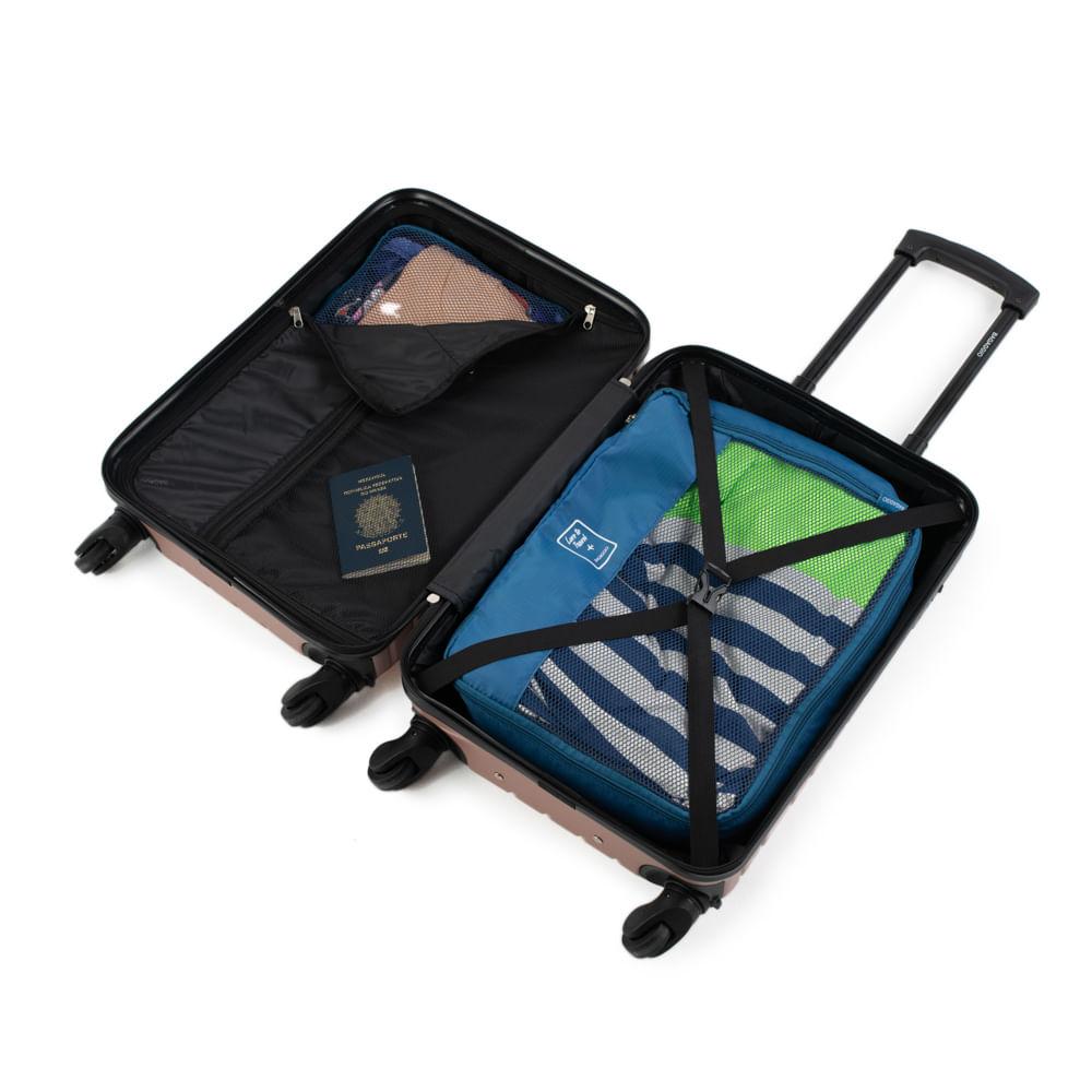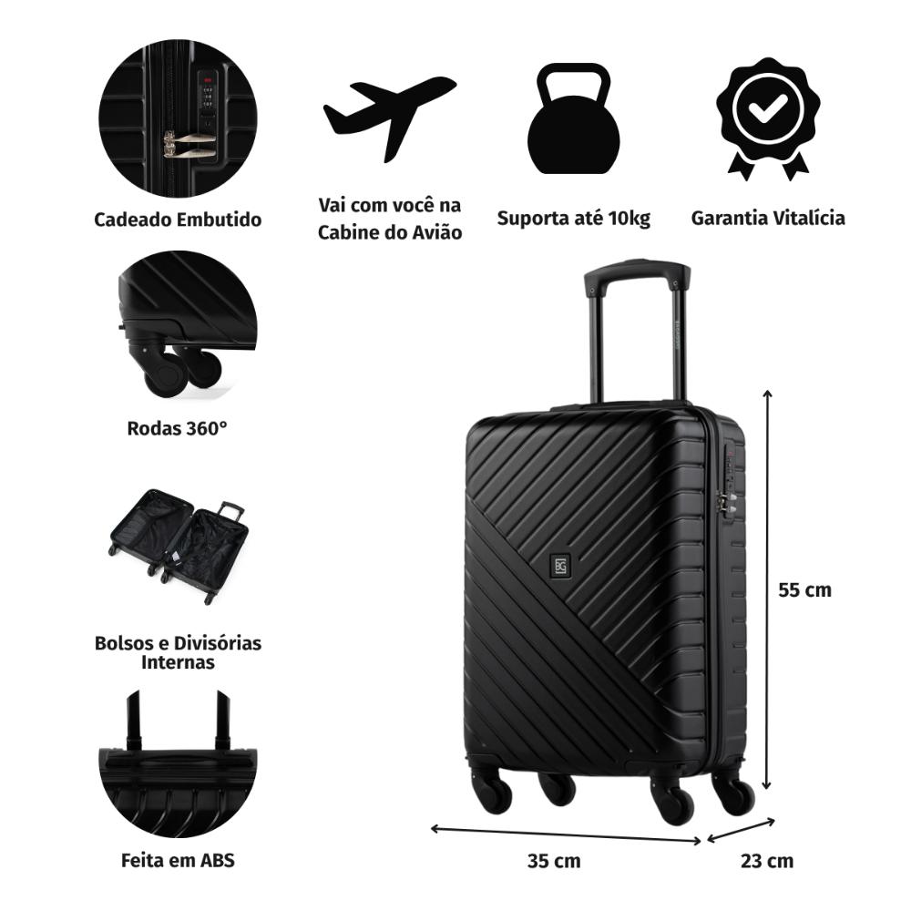 A mala Detroit é uma das queridinhas da Bagaggio! A Mala de Bordo detroit comprta até 10 kg e pode ir com você dentro do avião. Com o seu design elegante e clássico, conta com 4 rodas com giro de 360°, facilitando o transporte da mala. Para maior segurança, esse modelo conta com cadeado fixo, trazendo tranquilidade paras as suas viagens. Além disso, possui compartimentos em zíper e cinta para organizar melhor os seus pertences. Diferenciais: - Vai à Bordo - Cadeado fixo; - Rodas com giro 360°; Rodas 360º: Rodas 360° As rodas com giro 360º facilitam o deslocamento da mala de viagem, fazendo com que ela possa ser conduzida em qualquer direção, sem precisar incliná-la e sem fazer esforço. Cadeado com Senha: Cadeado com senha embutido O cadeado com senha vem embutido na mala. Nele, você cadastra uma senha numérica para prender os fechos e viajar com mais segurança. Mala de ABS: Mala de ABS ABS é um excelente material para construção de malas. Por ser um polímero, ele apresenta uma boa resistência a impactos, tornando as malas de viagem mais leves e duráveis.