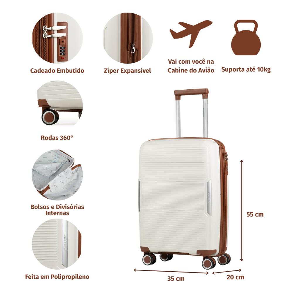 Mala de Bordo 10 Kg Polipropileno Malta Branca e Marrom