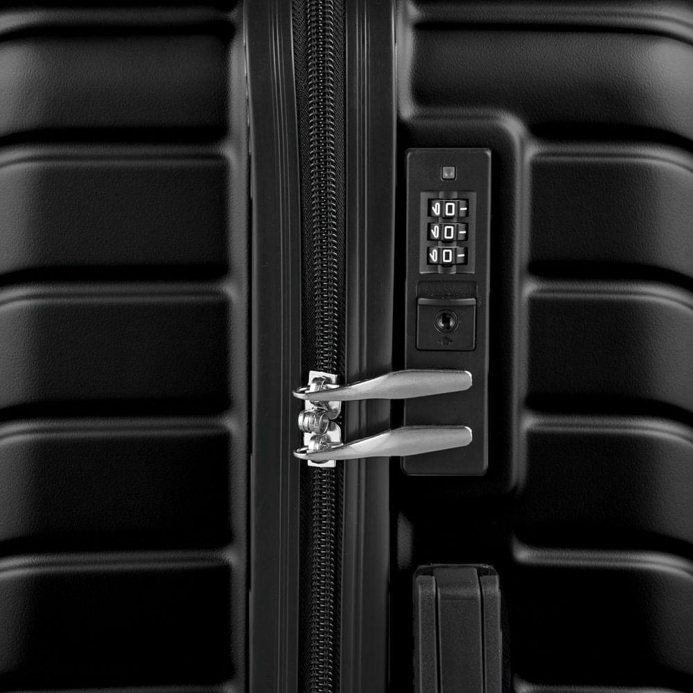 Mala Média 23 Kg ABS 4 Rodas 26" Detroit Preta Rodas 360º: Rodas 360° As rodas com giro 360º facilitam o deslocamento da mala, fazendo com que ela possa ser conduzida em qualquer direção, sem precisar incliná-la e sem fazer esforço. Amplo espaço interno: Amplo compartimento Interno A mala conta com divisórias simples e elásticos com trava, ideais para manter seus itens no lugar. Além disso, ela possui amplo espaço interno. Cadeado com Senha: Cadeado com senha embutido O cadeado com senha vem embutido na mala. Nele, você cadastra uma senha numérica para prender os fechos e viajar com mais segurança.