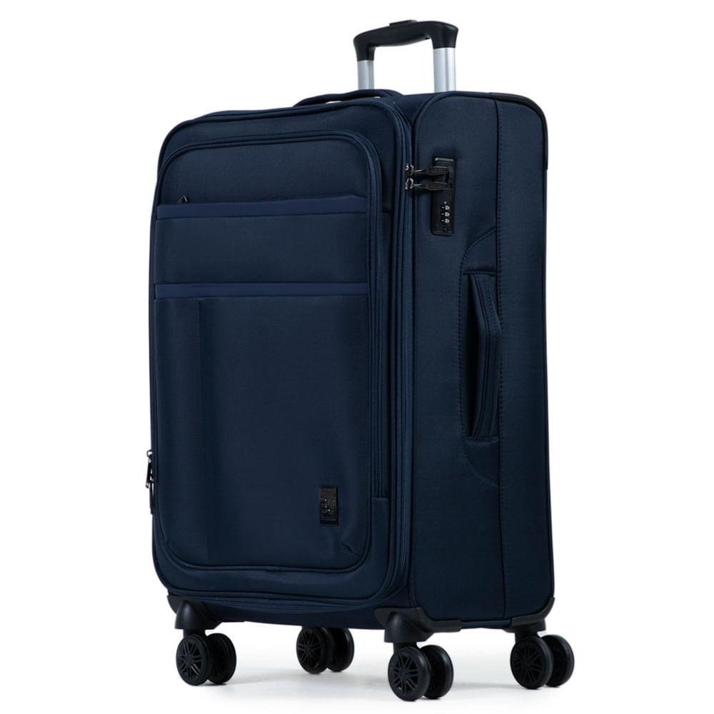 Mala Média 23kg Poliéster 4 Rodas 26" Lyon Azul Escuro