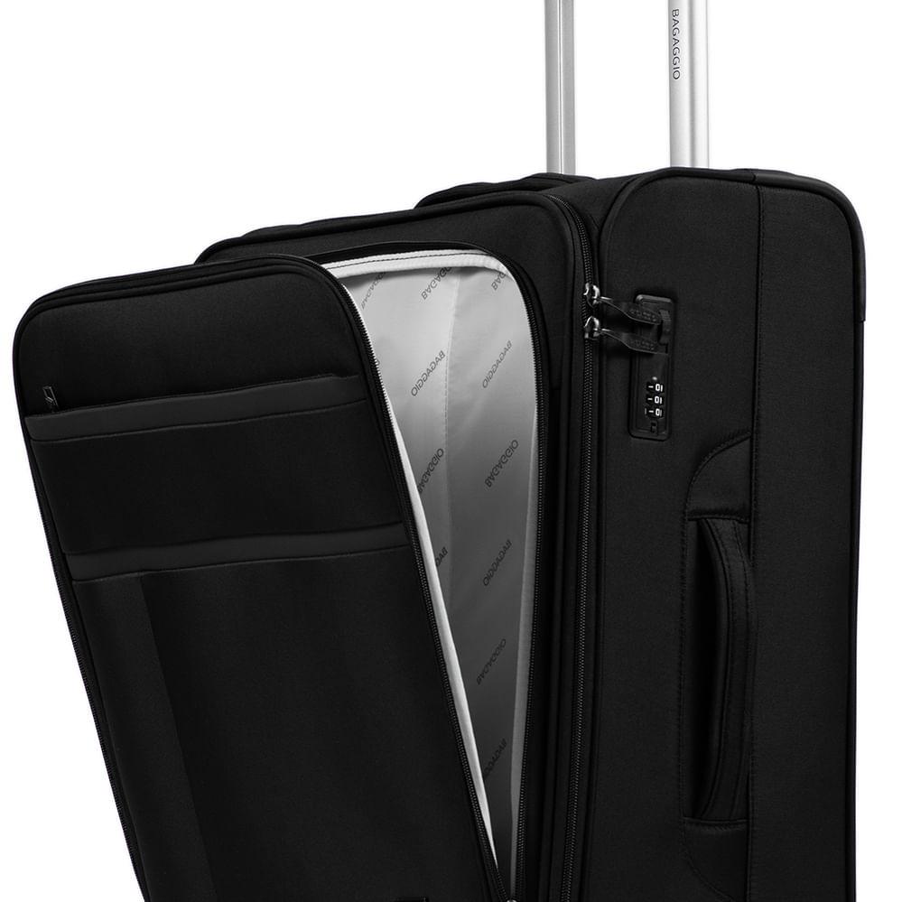 Mala Média 23kg Poliéster 4 Rodas 26" Lyon Preta: : : : : : : : : : A Bagaggio é sinônimo de tradição e qualidade, estando sempre presente na rotina e nas viagens de seus clientes.Por isso, desde 1942, nosso principal objetivo é atender às necessidades de viajantes de todas as idades e perfis, proporcionando assim a estes a qualidade necessária para carregar, de forma confortável e inteligente, todos os seus itens.