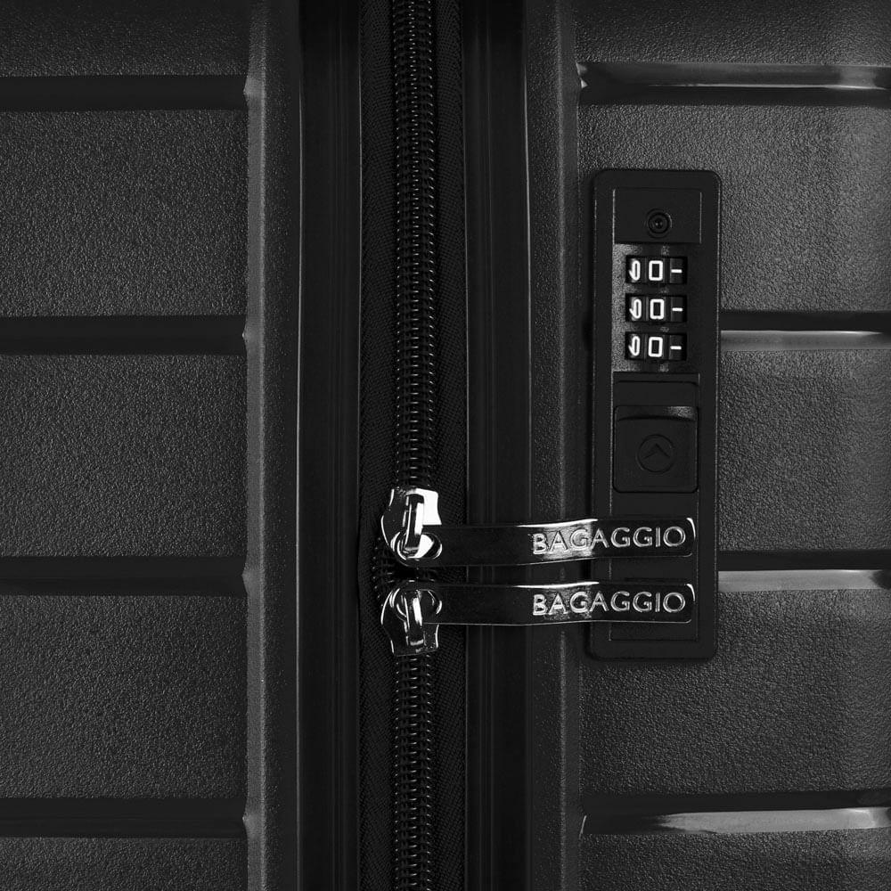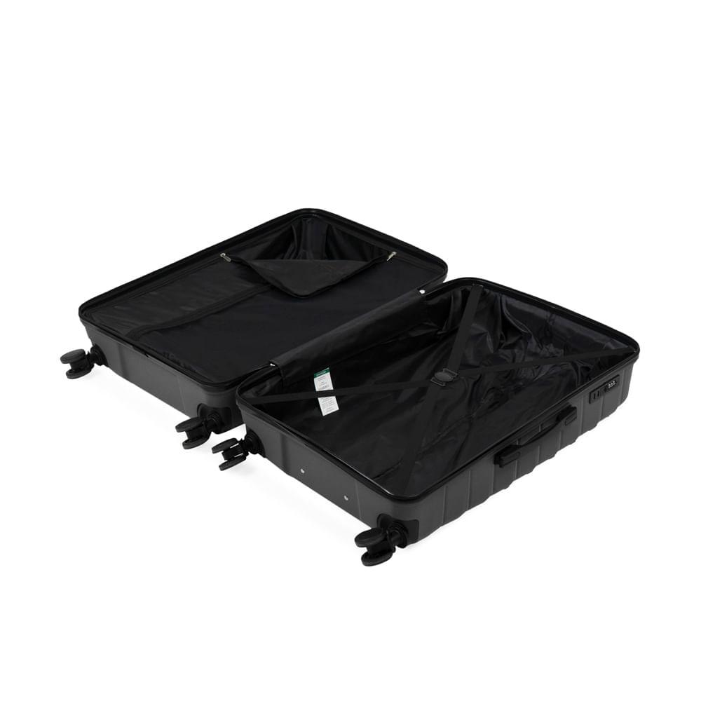 Mala Route Grande Preta Com amplo espaço interno, a Mala Route Grande é ideal para viagens longas. Fabricada em polipropileno, material reconhecido pela alta resistência e leveza, esta mala foi projetada para encarar qualquer trajeto com segurança. O corpo rígido protege os pertences contra impactos, enquanto o fechamento com cadeado embutido garante tranquilidade em viagens nacionais e internacionais. Possui rodas duplas 360°, que proporcionam deslizamento suave em qualquer direção, e interior com divisórias e elásticos cruzados, otimizando a organização. Um modelo moderno e durável, perfeito para quem busca proteção e praticidade real ao viajar. Rodas 360º: Rodas 360° As rodas com giro 360º facilitam o deslocamento da mala, fazendo com que ela possa ser conduzida em qualquer direção, sem precisar incliná-la e sem fazer esforço. Cadeado com Senha: Cadeado com senha embutido O cadeado com senha vem embutido na mala. Nele, você cadastra uma senha numérica para prender os fechos e viajar com mais segurança.