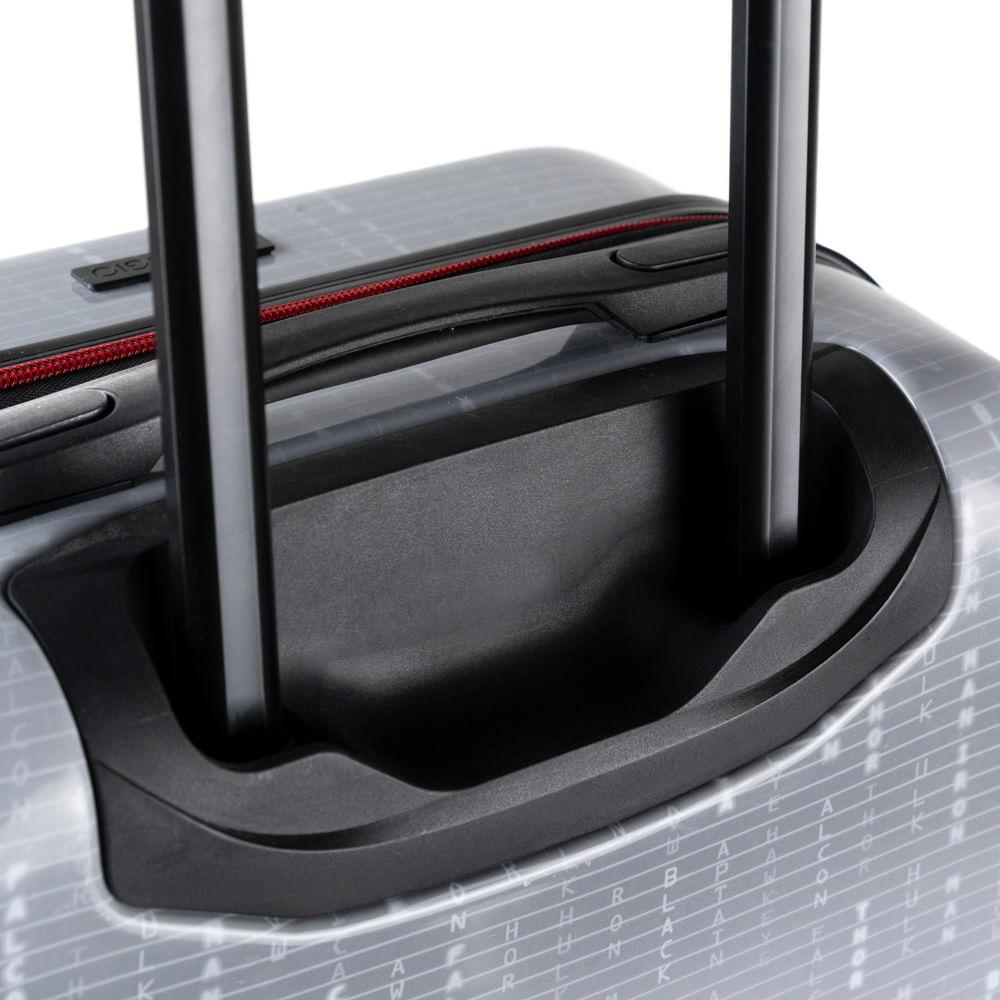 Rodas 360º: Rodas 360° As rodas com giro 360º facilitam o deslocamento da mala, fazendo com que ela possa ser conduzida em qualquer direção, sem precisar incliná-la e sem fazer esforço. Amplo espaço interno: Amplo compartimento Interno A mala conta com divisórias simples e elásticos com trava, ideais para manter seus itens no lugar. Além disso, ela possui amplo espaço interno. Cadeado com Senha: Cadeado com senha embutido O cadeado com senha vem embutido na mala. Nele, você cadastra uma senha numérica para prender os fechos e viajar com mais segurança.