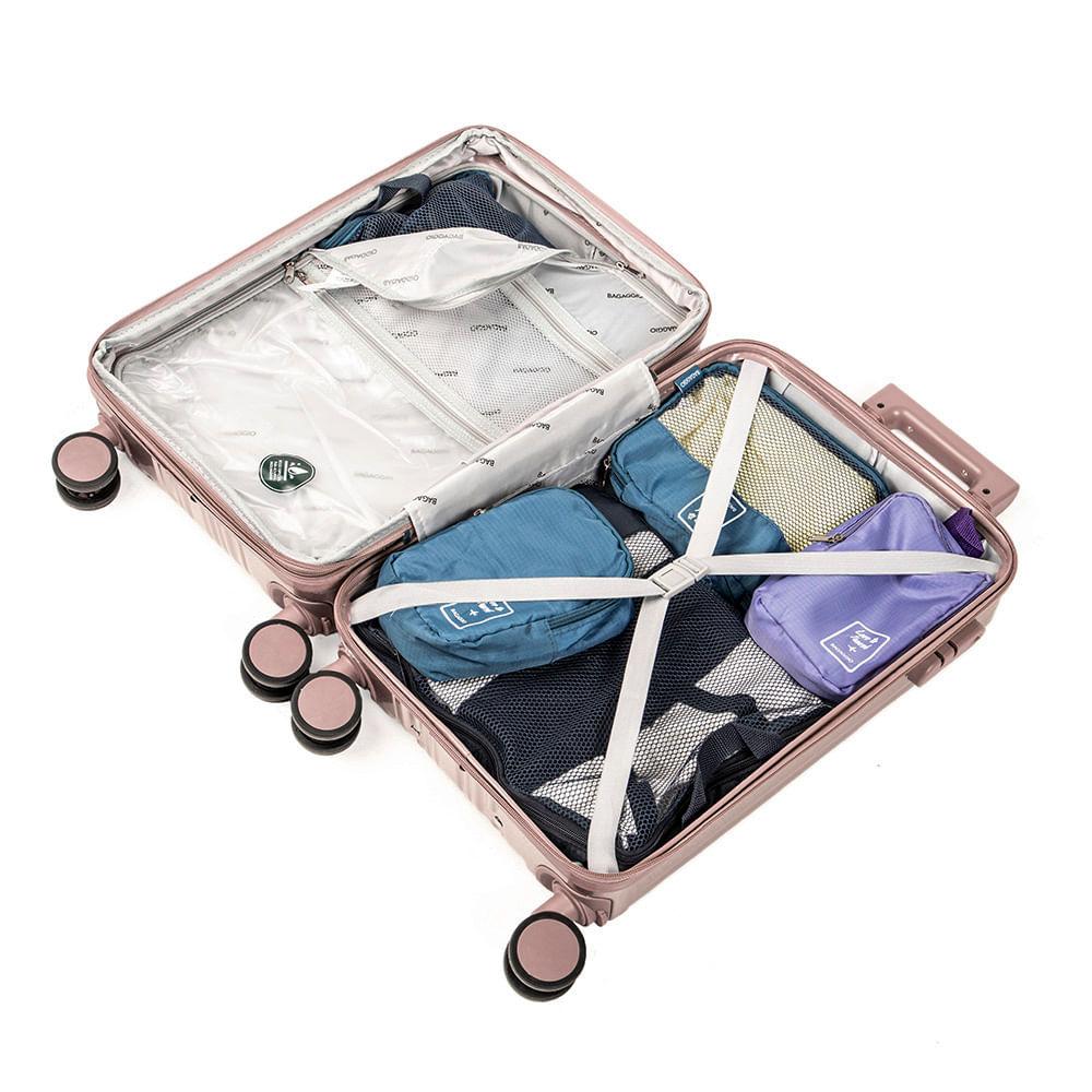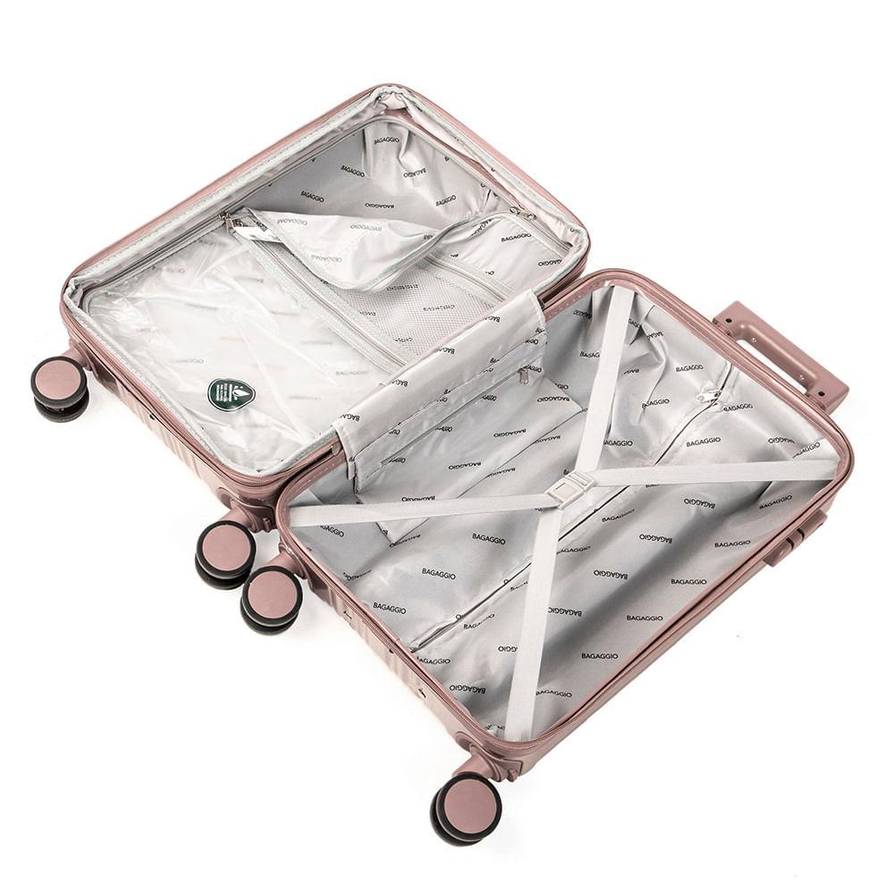 Mala de Bordo 10 kg Policarbonato 4 Rodas Monte Carlo RoséZiper Expansível: Zíper Expansível O zíper expansível faz com que a mala de viagem ganhe alguns centímetros de espaço extra, perfeito para acomodar itens a mais.Cadeado TSA: Cadeado TSA A melhor opção para proteger sua bagagem em voos internacionais. Os cadeados TSA possuem abertura para uma chave universal, assim, a segurança do aeroporto consegue abrir o cadeado e inspecionar a bagagem sem precisar estourar o cadeado e danificar sua mala.Rodas 360º: Rodas 360° As rodas com giro 360º facilitam o deslocamento da mala de viagem, fazendo com que ela possa ser conduzida em qualquer direção, sem precisar incliná-la e sem fazer esforço.Vai à Bordo: Vai à Bordo Essa mala de viagem é uma mala de bordo ou seja, vai com você no avião. Não tem necessidade despachar a bagagem.Especificações: Material: Policarbonato Peso (kg): 3,07 kgDimensões: 56 x 35,5 x 23 cmCapacidade: 45 LCor: Rosé Marca: BagaggioFaixa Etária: Adulto Outros atributos: - Rodas 360°.- 4 Rodas. - Espaço interno com cinta organizadoras. - Cadeado TSA. - Divisórias interna.