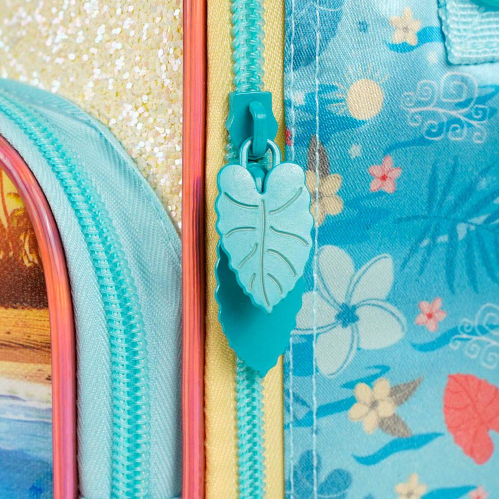 Lancheira Térmica Feminina Moana é a opção ideal para quem busca uma lancheira infantil prática, resistente e com um visual encantador inspirado no universo da personagem. Seu grande diferencial está no conjunto de painel frontal com glitter prensado, aplique 3D do personagem, puxadores personalizados e um design que traz brilho e textura, criando um modelo que se destaca no mix infantil da Bagaggio.Organização e Capacidade TérmicaFeita para acompanhar a rotina escolar, a lancheira conta com compartimento térmico interno, ideal para manter lanches frescos por mais tempo. O espaço é suficiente para potes, sucos, frutas e snacks, mantendo tudo conservado e protegido. O bolso frontal facilita o acesso rápido a itens menores, enquanto o formato estruturado ajuda a manter recipientes alinhados e sem risco de virar.Conforto no TransporteA lancheira pode ser carregada com total liberdade: pelas costas ou pela alça de mão. As alças ajustáveis permitem que a criança use a peça como mochila de lanche, mantendo as mãos livres. Já a alça superior reforçada garante praticidade na hora de pegar e levar. O modelo também conta com alça traseira para acoplar na haste da mochila de rodinhas, permitindo que tudo seja transportado junto sem esforço.Detalhes Visuais ExclusivosEntre os destaques está o painel com glitter prensado, que não solta e mantém o brilho por muito tempo, além da estampa temática baseada no universo da Moana. O aplique 3D do personagem traz profundidade e realça a cena, enquanto os puxadores em formato de folha completam o visual tropical. São elementos que tornam a lancheira especial, colecionável e imediatamente reconhecível.Por que ela se destaca dentro do mix BagaggioO grande diferencial desta lancheira é a união entre isolamento térmico eficiente, design premium temático e versatilidade de uso. É resistente, fácil de limpar, confortável de carregar e visualmente marcante — para quem quer algo mais que “apenas uma lancheira”.2. FAQA lancheira mantém a temperatura por quanto tempo?Sim — o compartimento térmico mantém os alimentos frescos por mais tempo, ideal para a rotina escolar.Cabe pote grande?Sim. O interior estruturado comporta potes médios e grandes, além de suco, frutas e snacks.Dá para usar como mochila?Sim. As alças ajustáveis permitem usar como lancheira-bolsa ou lancheira tipo mochila.É fácil de limpar?Sim. O interior possui revestimento térmico resistente, facilitando a higienização diária.Posso acoplar na mochila escolar?Sim. O modelo tem alça traseira própria para acoplar na haste da mochila de rodinhas.Especificações:Material: PoliésterTamanho: 20 x 25 x 13 cmPeso: 0,360kgCapacidade: 6,5LGarantia: 90 diasFaixa etária: Infantil (3 a 8 anos)Outros atributos: - Zíper Personalizado.- Lancheira é térmica. - Tag de identificação. - Alça corona. - Um bolso frontal pequeno.