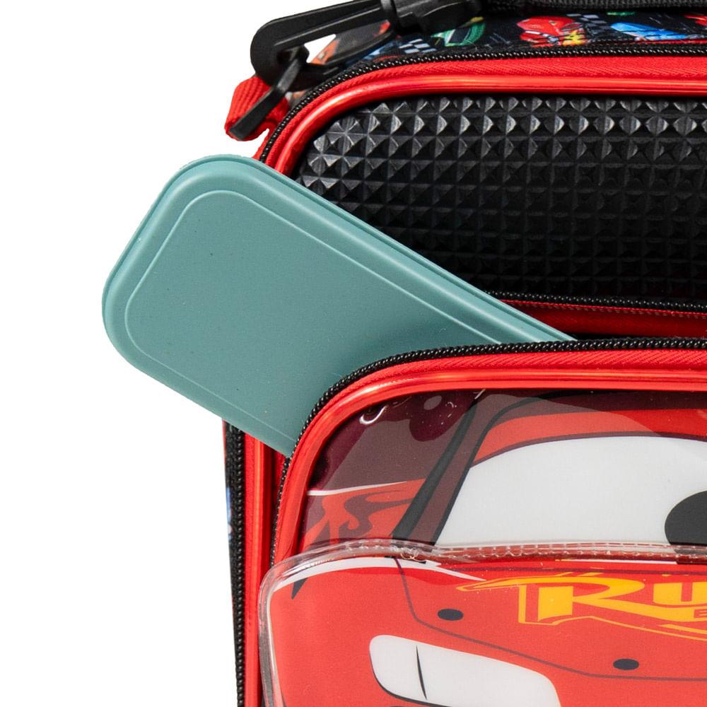 A Lancheira Térmica Masculina Carros Vermelha é a escolha ideal para quem busca uma lancheira infantil resistente, fácil de usar e com o visual que as crianças realmente amam. Pensada para acompanhar a rotina escolar, ela combina isolamento térmico, estampa oficial Disney·Pixar Cars e um bolso frontal com aplique 3D do personagem Relâmpago McQueen, que deixa tudo mais divertido.Com formato espaçoso e acesso simples, é perfeita para levar lanche, frutas, garrafinha e potes organizados ao longo do dia.Organização e Espaço InternoA lancheira oferece compartimento térmico interno que ajuda a manter a temperatura dos alimentos por mais tempo, protegendo lanches frescos durante a manhã ou tarde. O bolso frontal estruturado permite separar pequenos itens, guardanapos ou talheres. As alças de costas facilitam para a criança carregar sozinha quando quiser, enquanto a alça de mão dá mais autonomia no uso diário.A alça carona permite encaixar facilmente na haste da mochila de rodinhas da mesma coleção, deixando o conjunto ainda mais prático para os pais e confortável para a criança.Conforto no Dia a DiaAs alças de costas acolchoadas garantem uso mais confortável. A lancheira é leve, fácil de abrir, tem ótimo acesso aos compartimentos e reforço nas costuras para acompanhar toda a rotina escolar sem perder a estrutura.Detalhes que fazem diferençaO destaque visual do modelo é o aplique 3D do Relâmpago McQueen no bolso frontal, que traz profundidade e brilho ao desenho. A estampa corrida dos personagens cria um visual cheio de movimento, enquanto o material texturizado especial reforça durabilidade e brilho.Para completar, vem com tag de identificação escolar personalizada, permitindo anotar nome, telefone, escola e série — essencial para ambientes escolares.Por que escolher esta lancheiraO maior diferencial desta lancheira no mix Bagaggio é a combinação de design exclusivo, material resistente, funcionalidade térmica e detalhes oficiais Disney·Pixar, tornando-a uma opção durável, prática e muito desejada pelas crianças. É ideal para quem procura uma lancheira infantil forte para o dia a dia e que ao mesmo tempo faça a criança querer usar.FAQEssa lancheira mantém mesmo a temperatura dos alimentos?Sim. O compartimento térmico ajuda a conservar a temperatura por mais tempo, especialmente quando usada com potes adequados.Cabe garrafinha dentro?Sim, o espaço interno é ótimo para lanches, frutas, potes e garrafinha pequena.Ela pode ser usada junto da mochila de rodinhas Carros?Pode. A lancheira possui alça carona, que encaixa na haste da mochila para facilitar o transporte.Ela é fácil de limpar?Sim. O material interno pode ser higienizado rapidamente com pano úmido.A lancheira é confortável para a criança carregar?Sim. As alças acolchoadas tornam o uso mais confortável no trajeto escolar.Especificações:Material: PoliésterTamanho:20 x 25 x 13 cmPeso: 0,36kgCapacidade: 6,5LGarantia: 90 diasFaixa etária: Infantil (3 a 8 anos)Outros atributos: - Zíper Personalizado.- Lancheira é térmica. - Tag de identificação. - Alça carona. - Aplique 3D do personagem Relâmpago McQueen.Atenção: A lancheira não acompanha garrafa, pote ou qualquer outro acessório