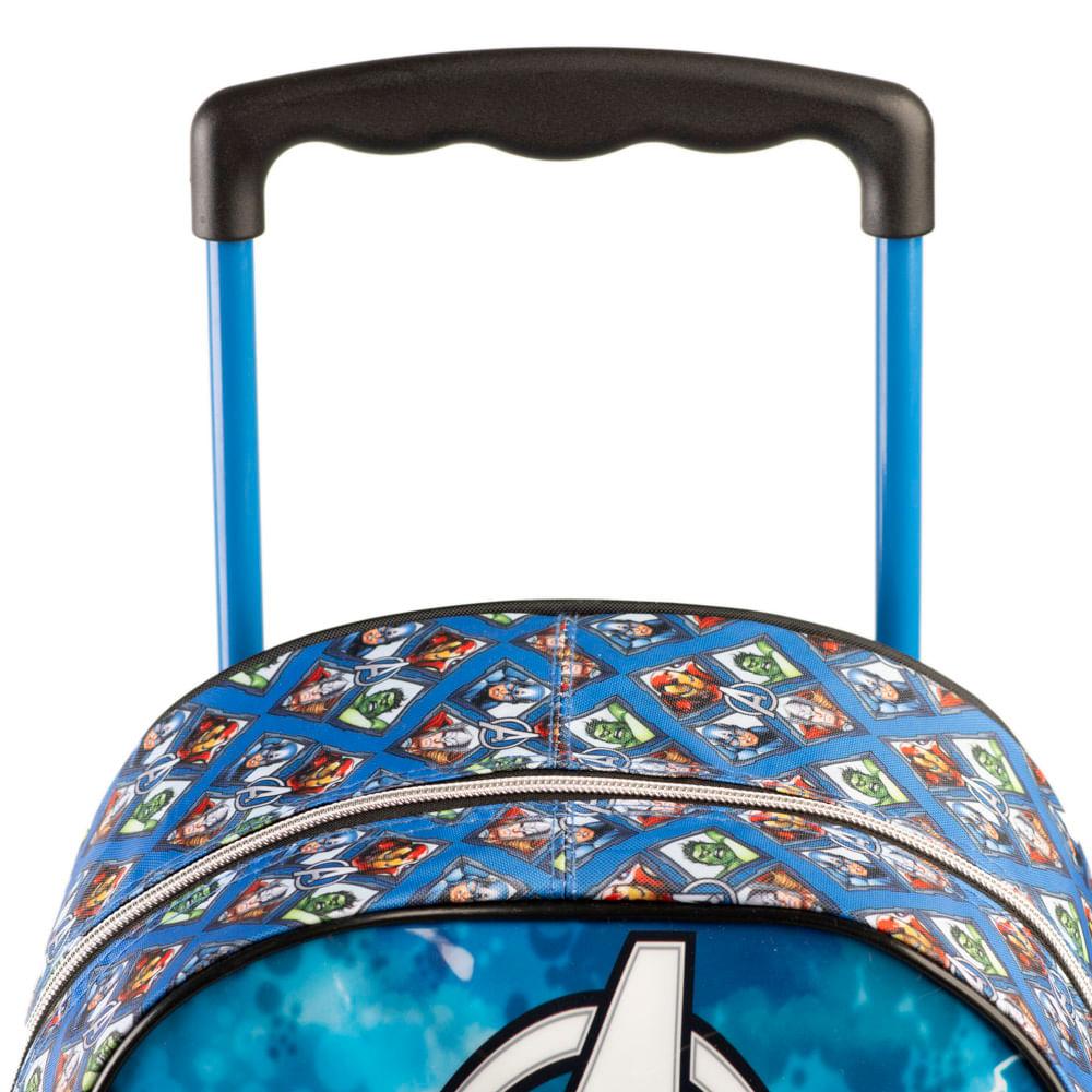 Mochila de Rodinha Infantil Masculina Vingadores Azul A Mochila com duas rodinhas Vingadores 25K P0 é a companhia ideal para as fãs da Marvel. Com um design encantador, ela traz os icônicos heróis em grande estilo, garantindo personalidade e praticidade para o dia a dia escolar. Principais Atributos - Estampa Vingadores Com uma estampa vibrante dos Vingadores, essa mochila é perfeita para quem adora o mundo de heróis e deseja um toque de diversão no seu acessório. - Amplo espaço interno O compartimento principal oferece espaço suficiente para cadernos, livros e outros materiais, ideal para o uso escolar ou passeios. - Tag de identificação Na parte traseira da mochila, há um espaço dedicado para identificação, permitindo que a os pais coloquem o nome da criança e informações de contato, garantindo maior segurança. - Rodinhas Equipada com duas rodas, facilita o transporte, proporcionando mais mobilidade e conforto ao usuário. - Bolsos Laterais para Garrafa Os bolsos laterais são ideais para transportar garrafas de água ou outros itens de fácil acesso. - Alças de mão e costas Possui uma alça de mão resistente para facilitar o transporte, além de alças guiadas e acolchoadas e ajustáveis nas costas, oferecendo conforto durante o uso. Bagagem Responde - A mochila tem garantia? Sim, a mochila conta com 90 dias de garantia para defeitos de fabricação.
