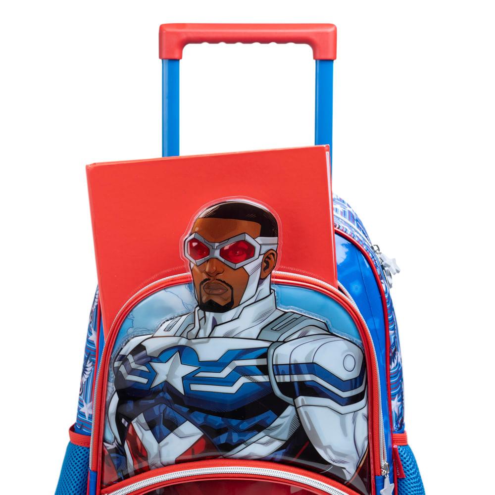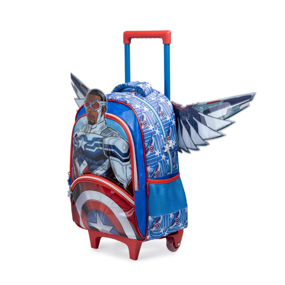 Mochila de Rodinha Infantil Masculina Capitão América com Asas Removíveis