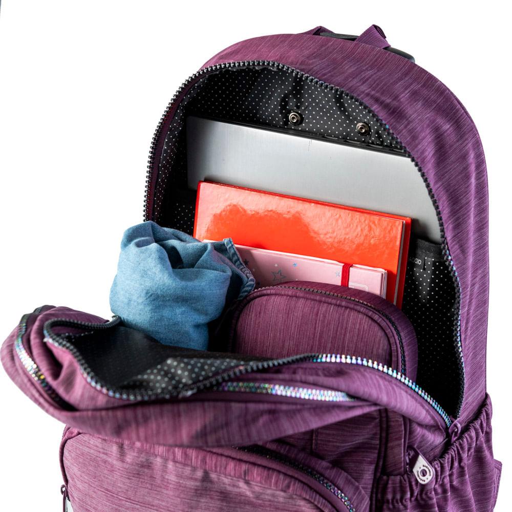 Mochila Escolar Feminina com Rodinhas Crinkle Chic Vinho Diferenciais: - ALÇA SUPERIOR DE MÃO - MOCHILETE DE 2 RODAS E APOIO FRONTAL - MODELO COM 2 COMPARTIMENTOS - COMPARTIMENTO PARA NOTEBOOK ATÉ 15"" - BOLSO FRONTAL DE FÁCIL ACESSO - BOLSO ORGANIZADOR - BOLSOS LATERAIS PORTA CANTIL - ALÇAS TRASEIRAS AJUSTÁVEIS - ALÇAS TRANSVERSÁIS REMOVÍVEIS Compartimento para Notebook: Compartimento para Notebook Está mochila conta com porta notebook para você conseguir transportar seus equipamentos com mais segurança Amplo espaço interno: Amplo compartimento Interno A mochila conta com divisórias simples, ideais para manter seus itens organizados. Além disso, ela possui amplo espaço interno.