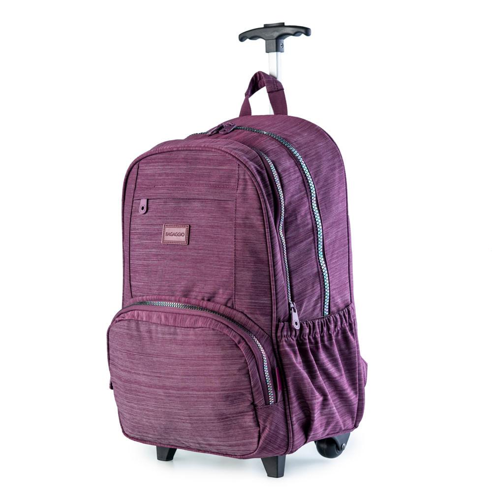 Mochila Escolar Feminina de Rodinhas Crinkle Chic Vinho