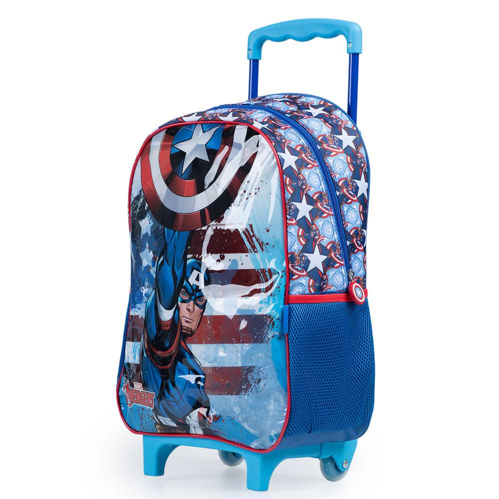 Mochila Escolar Masculina de Rodinhas Capitão América Azul Claro