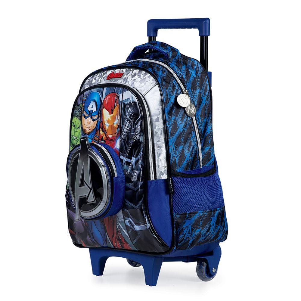 Mochila Escolar Infantil Com Rodinhas Masculina Vingadores Premium Azul