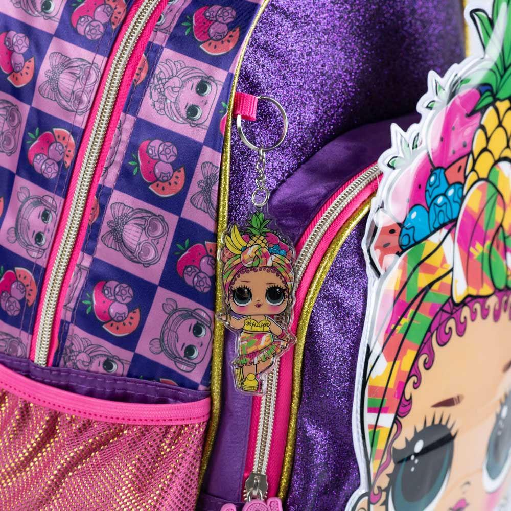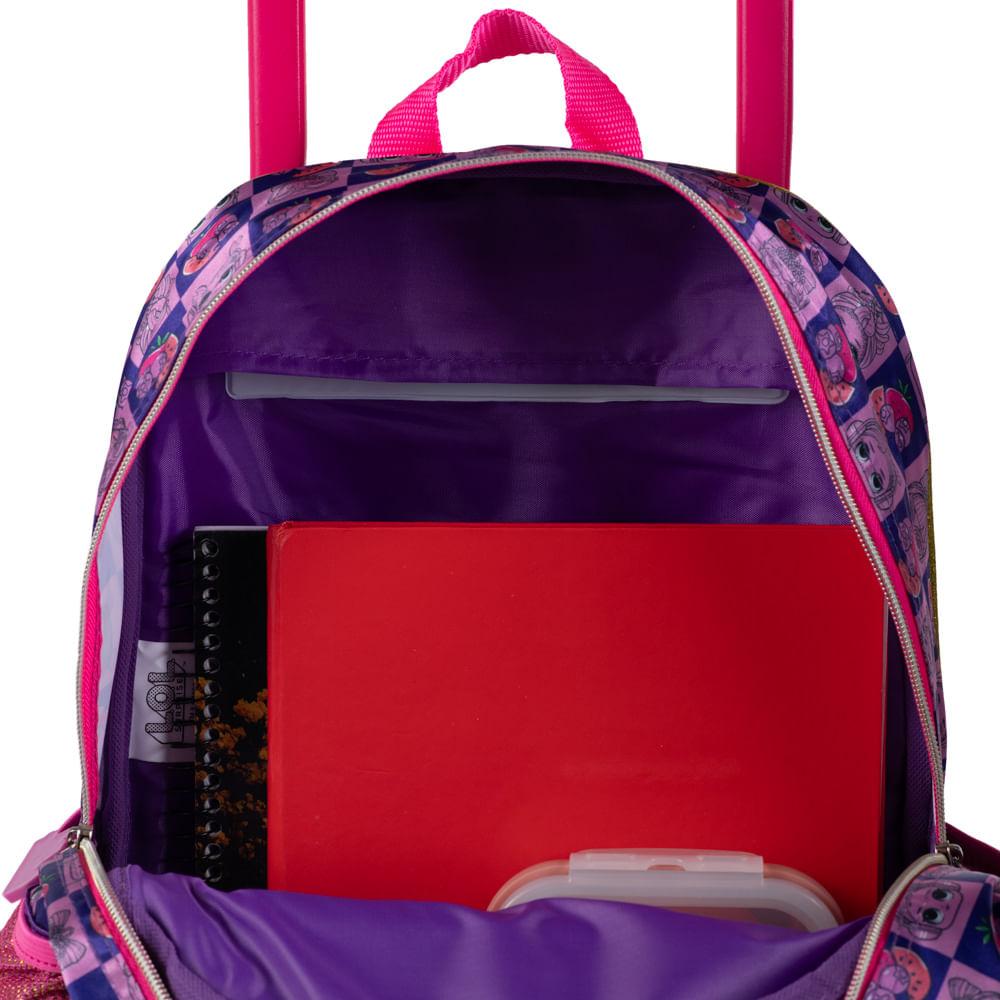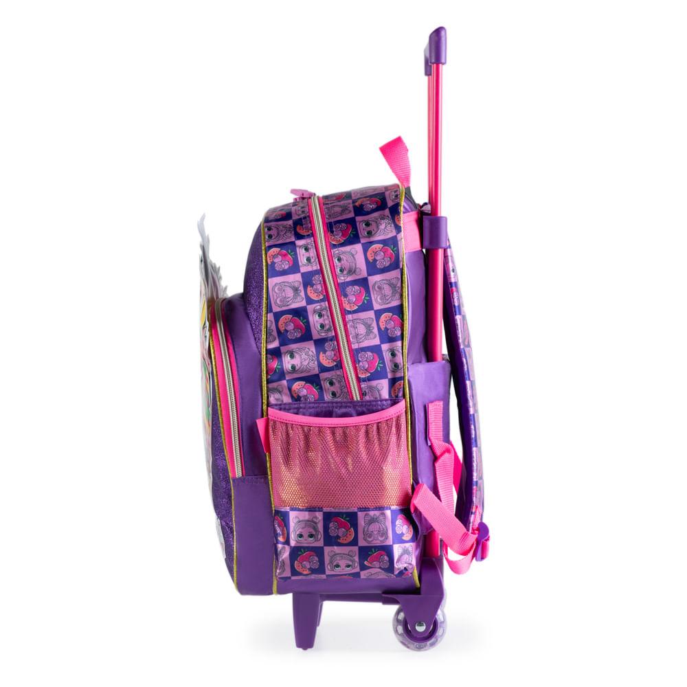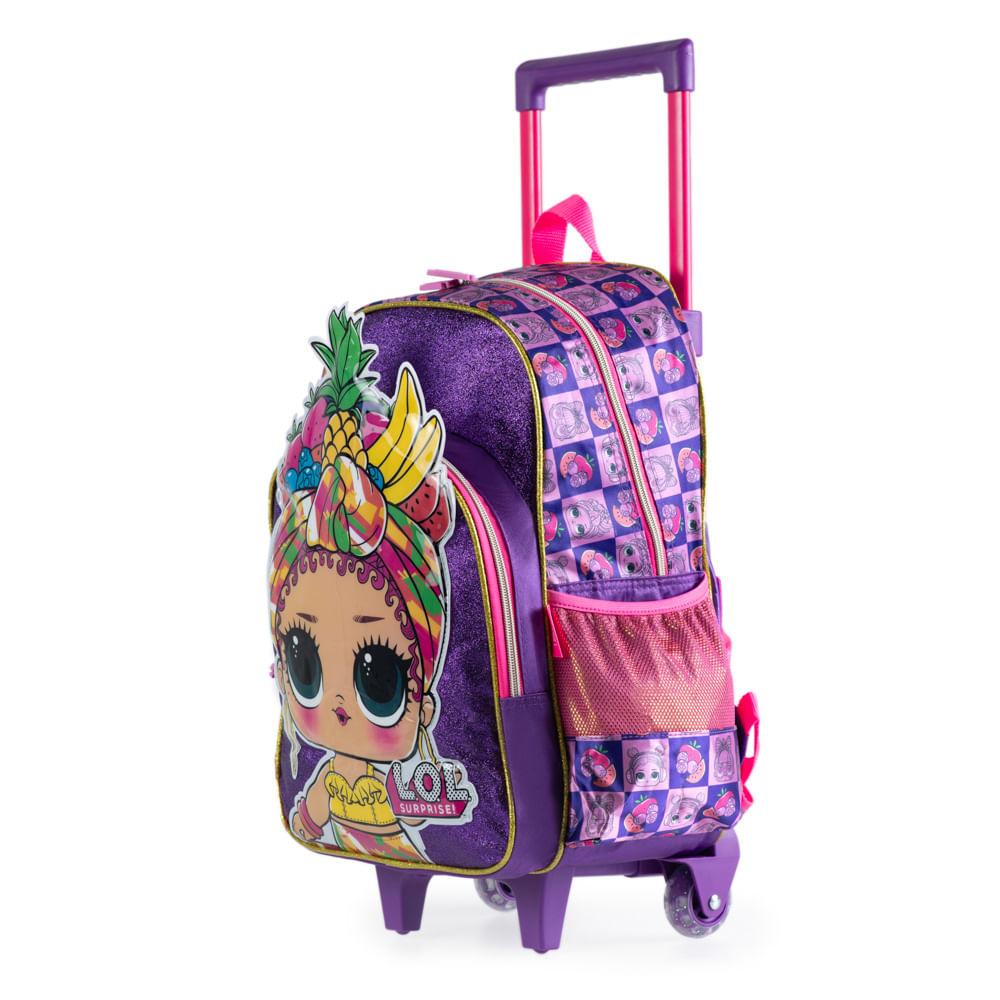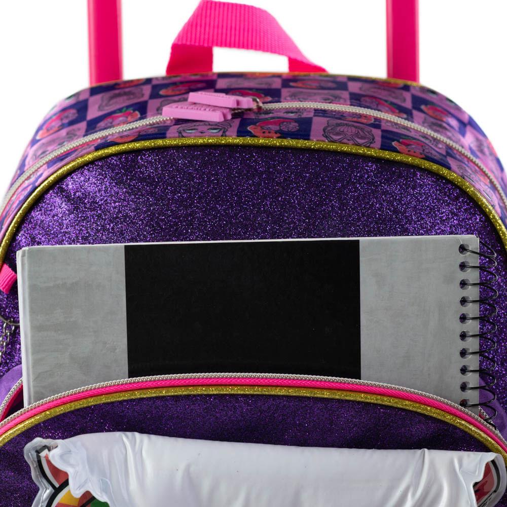 Mochila Escolar Infantil Feminina com Rodinhas LOL Premium Roxa