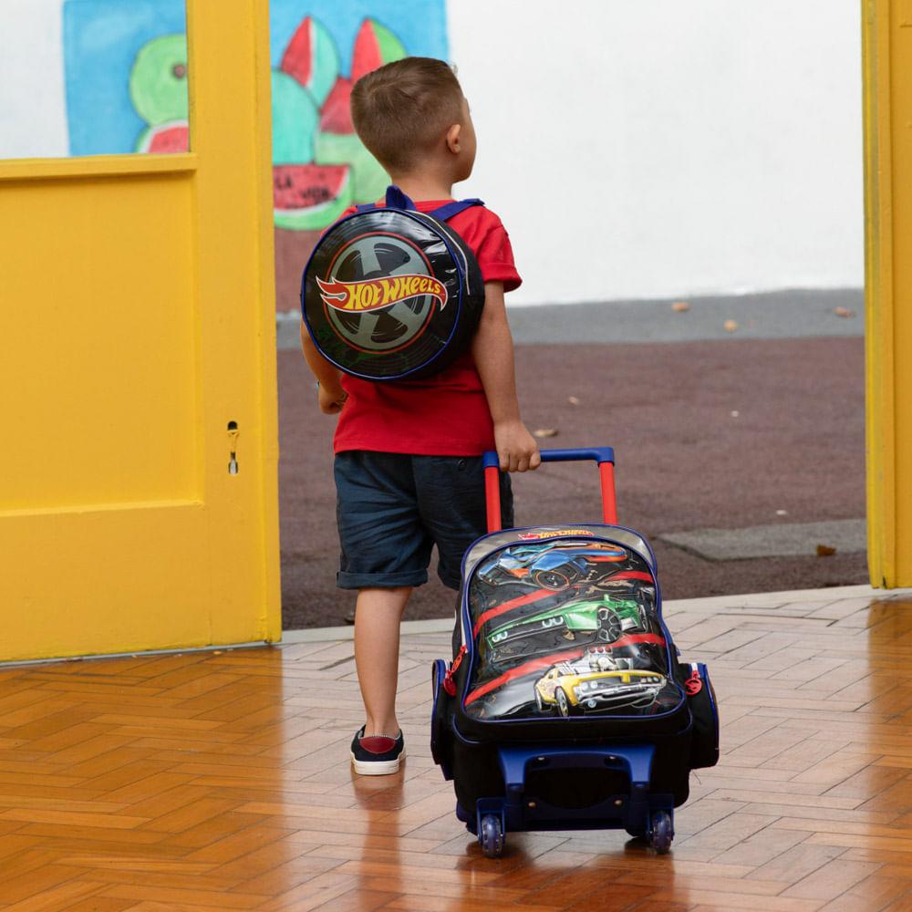 A mochila com 2 rodas Hot Wheels é a escolha ideal para o seu filho. Com o seu design desenvolvido pensando em unir estilo, conforto e praticidade, conta com estampa criativa em 3D dos carros do Hot Wheels, além de ter diversos detalhes holográficos. Conta com bolso frontal amplo e de fácil acesso e puxador em haste. As duas rodinhas facilitam o transporte da mochila no dia a dia do seu filho, evitando peso nas costas. Diferenciais: - Alça superior de mão; - Modelo com 2 compartimentos; - Bolso frontal amplo e de fácil acesso; - Alças traseiras acolchoadas, ajustáveis e com design de rodas de carro; - Puxadores em zíper personalizados de moedas do jogo; - 2 bolsos laterais com design de roda de carro para pequenos itens; - Logo Hot Wheels com material emborrachado; - Tag de identificação. Amplo espaço interno: Amplo compartimento Interno A mochila conta com divisórias simples, ideais para manter seus itens organizados. Além disso, ela possui amplo espaço interno. Alças traseiras ajustáveis: Alças traseiras ajustáveis A Mochila possui alças traseiras ajustáveis permetindo que ela sseja ajustada para qualquer tamanho. Mala de Poliéster: Mochila de Poliéster Feita a partir de fibras sintéticas, a mochila de poliéster, garante resistência, durabilidade e uma fácil manutenção, sendo uma excelente escolha para quem busca uma mochila de qualidade e mais barata. Além disso, ela proporciona uma ótima retenção de cor, o que permite com que sua mochila pareça nova por bastante tempo.