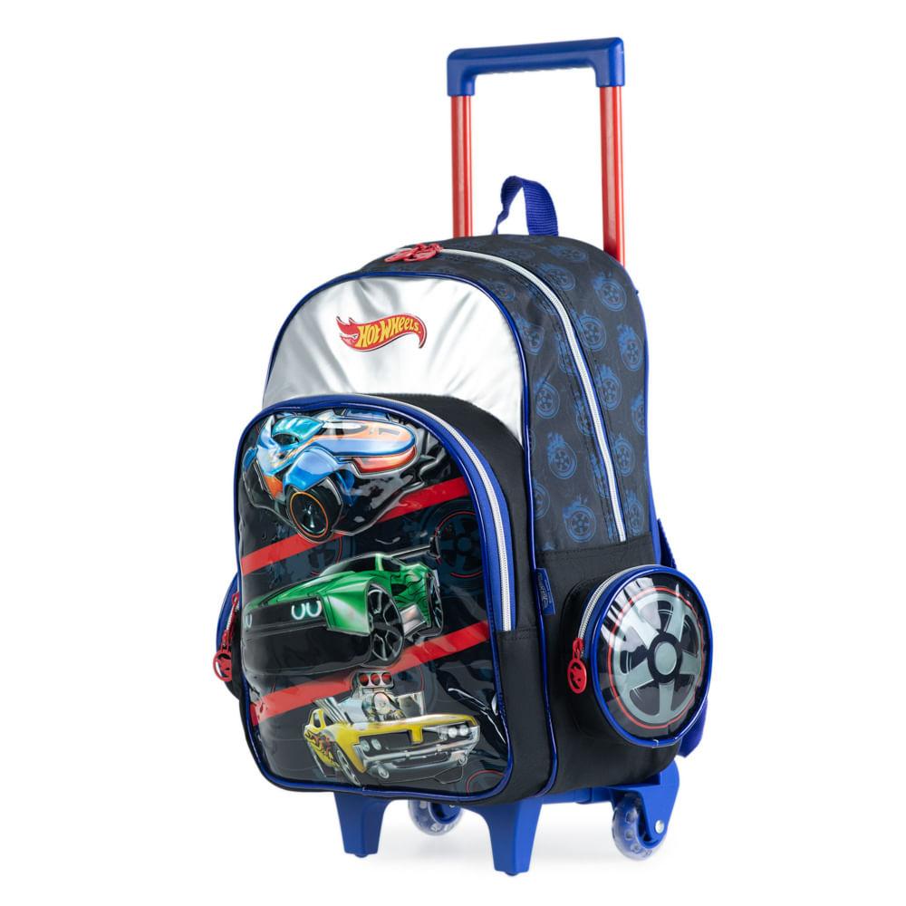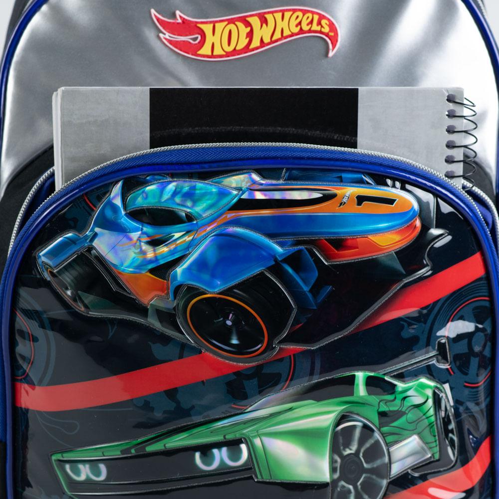 Mochila Escolar Infantil Rodinhas Hot Wheels Preta