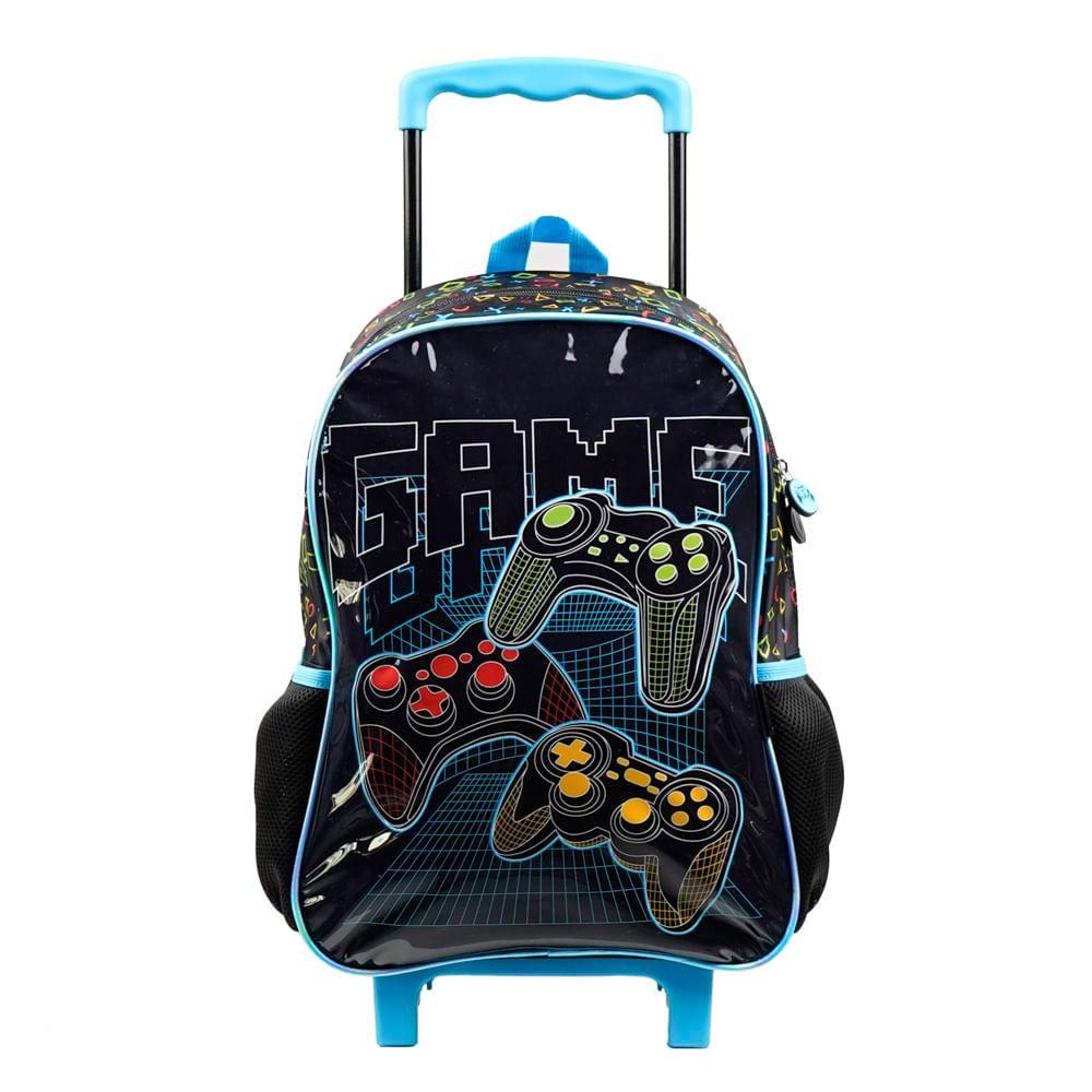 Mochila de Rodinhas Masculina Video Game Preta Especificações: Material: PoliésterTamanho: 41 x 30 x 15 cmPeso:0,800kgCapacidade:18,4LLGarantia: 90 diasFaixa etária: Infantil (3 a 8 anos)Outros atributos: - Zíper Personalizado.- Alças nas costas personalizadas. - Rodinha de silicone.- Bolso lateral para garrafa.
