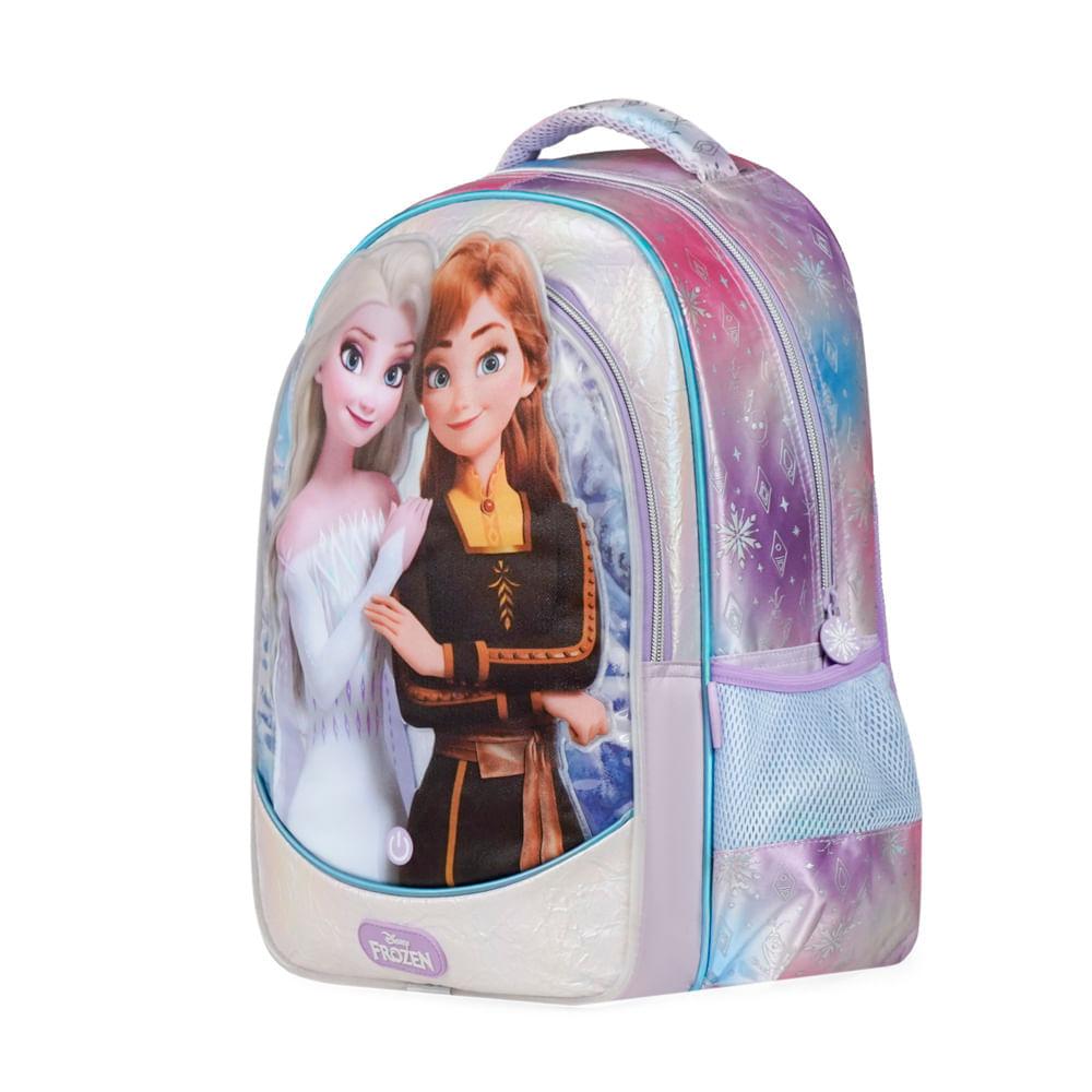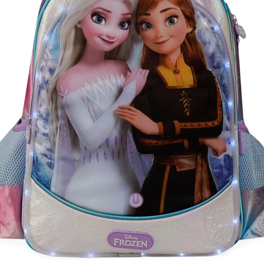A Mochila Escolar Feminina Infantil Frozen Azul Claro traz um design cheio de brilho e detalhes que encantam em qualquer ocasião. Produzida em material resistente, combina diferentes texturas que valorizam o visual: acabamento holográfico nas laterais, painel frontal com aplicação das personagens em alto-relevo e efeito perolado que reflete a luz. O bolso frontal conta om iluminação em LED acionada por botão, adicionando um toque interativo e divertido. Para o dia a dia, as alças e costas acolchoadas oferecem conforto, enquanto os bolsos laterais em tela são ideais para levar garrafinhas ou pequenos acessórios. O modelo ainda vem com alça carona, que permite acoplar a mochila em malas maiores, trazendo mais praticidade para viagens.Especificações: Material: PoliésterTamanho: 40 x 28 x 14 cmPeso: Mochila: 0,45kgCapacidade: 15,6 LGarantia: 90 diasFaixa etária: Infantil ( 3 a 8 anos)Outros atributos: - Tag de Identificação- Zíper Personalizado.- Bolso frontal de PVC com glitter. - Bolso lateral para garrafa. - Costas acolchoadas.